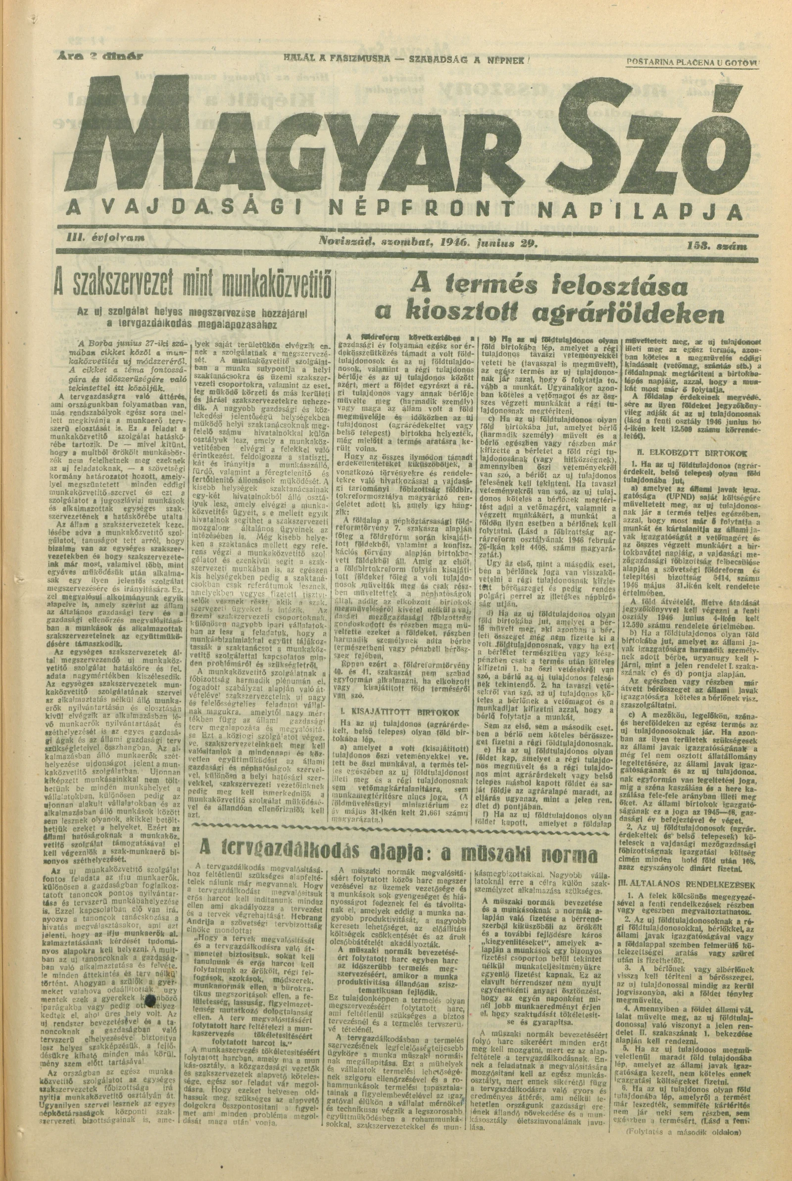 Magyar Szó, 3. évf. 1946. június 29. 153. sz. 1–8. oldal