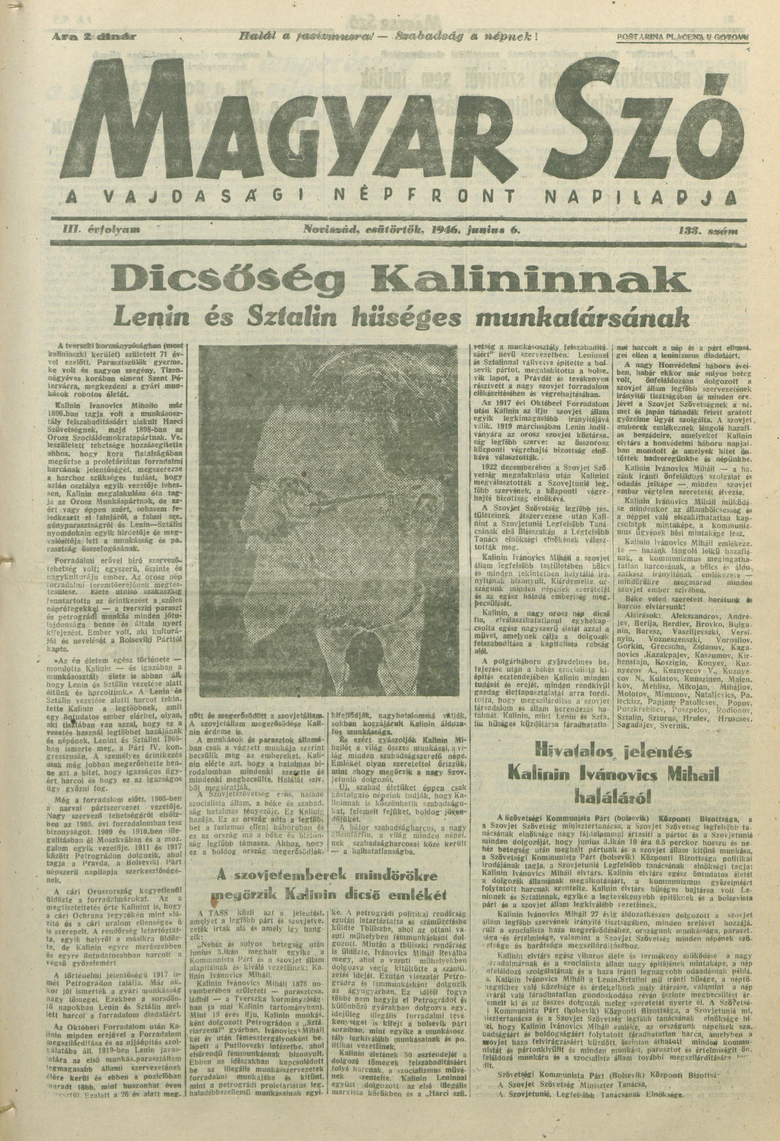 Magyar Szó, 3. évf. 1946. június 6. 133. sz. 1–8. oldal