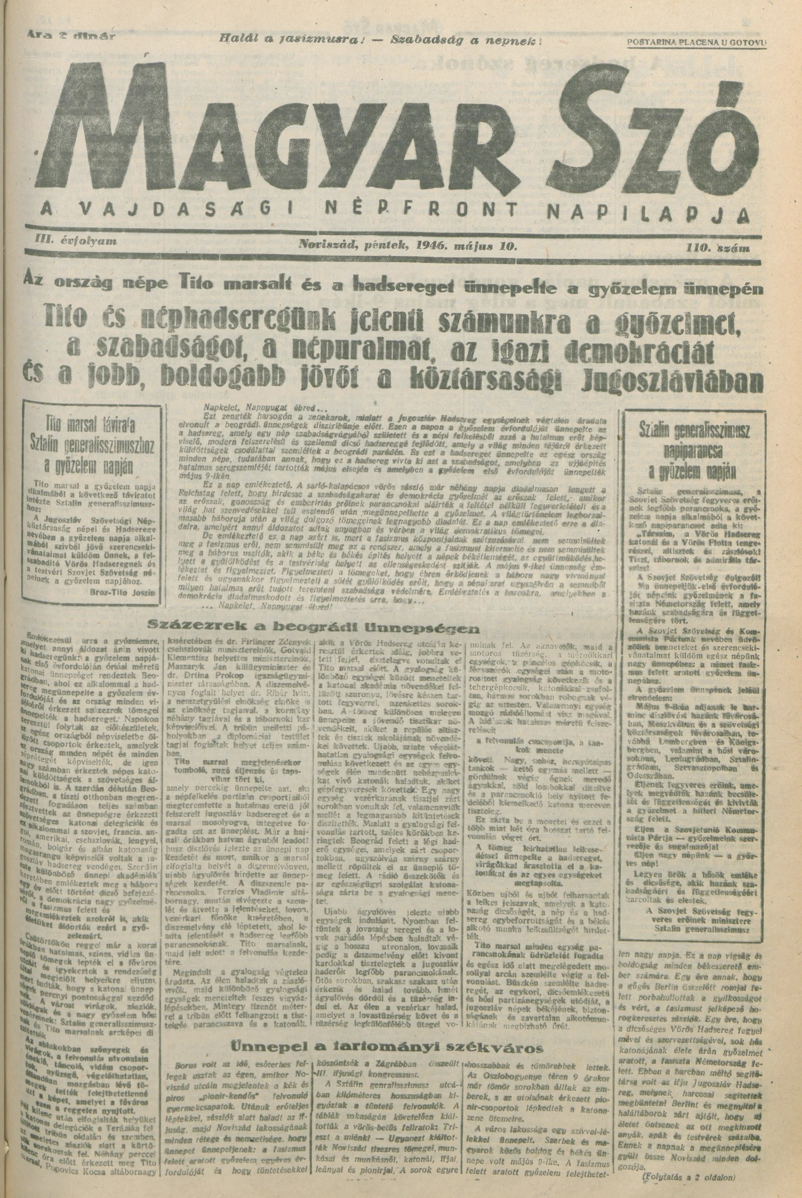 Magyar Szó, 3. évf. 1946. május 10. 110. sz. 1–4. oldal