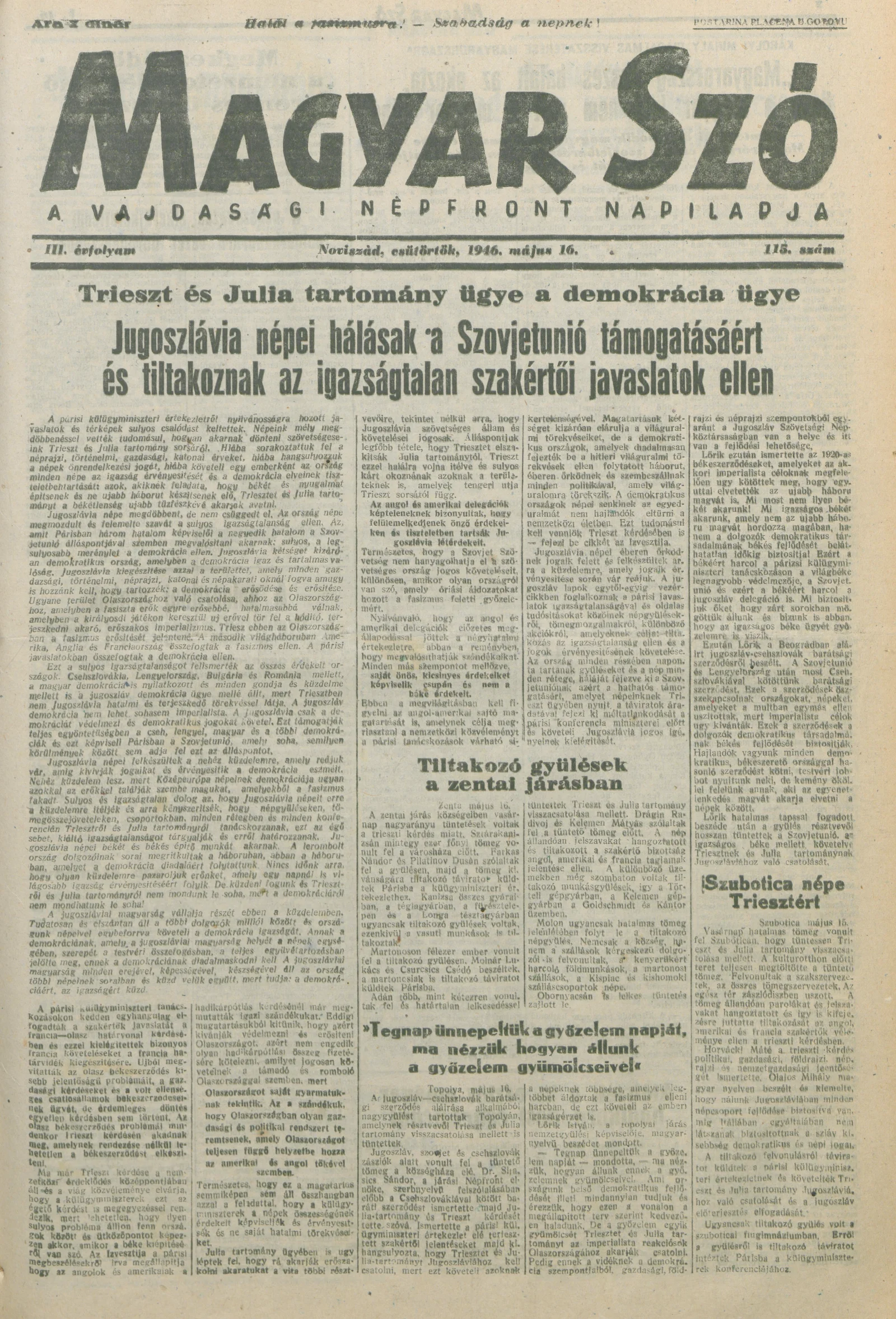Magyar Szó, 3. évf. 1946. május 16. 115. sz. 1–8. oldal