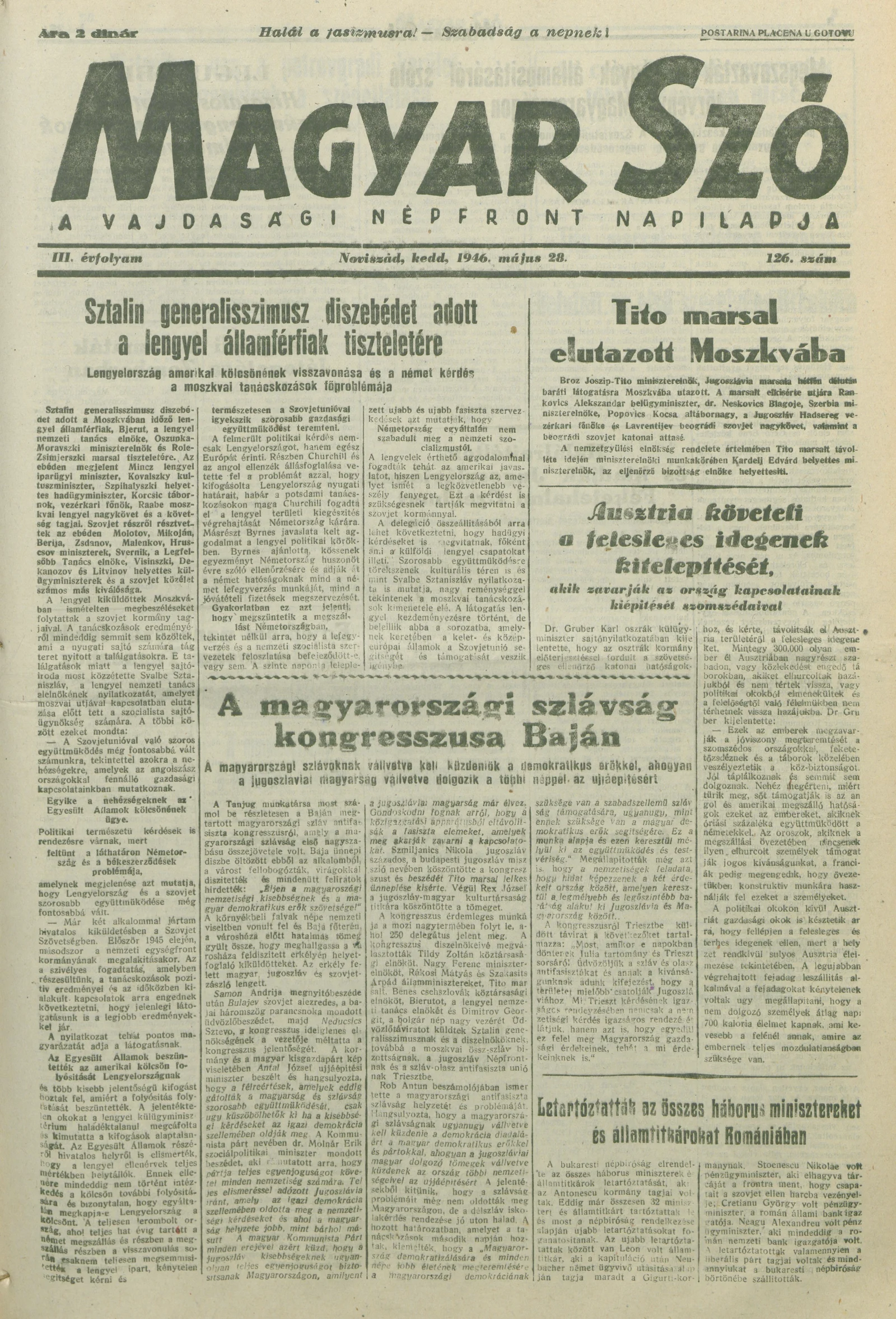 Magyar Szó, 3. évf. 1946. május 28. 126. sz. 1–8. oldal
