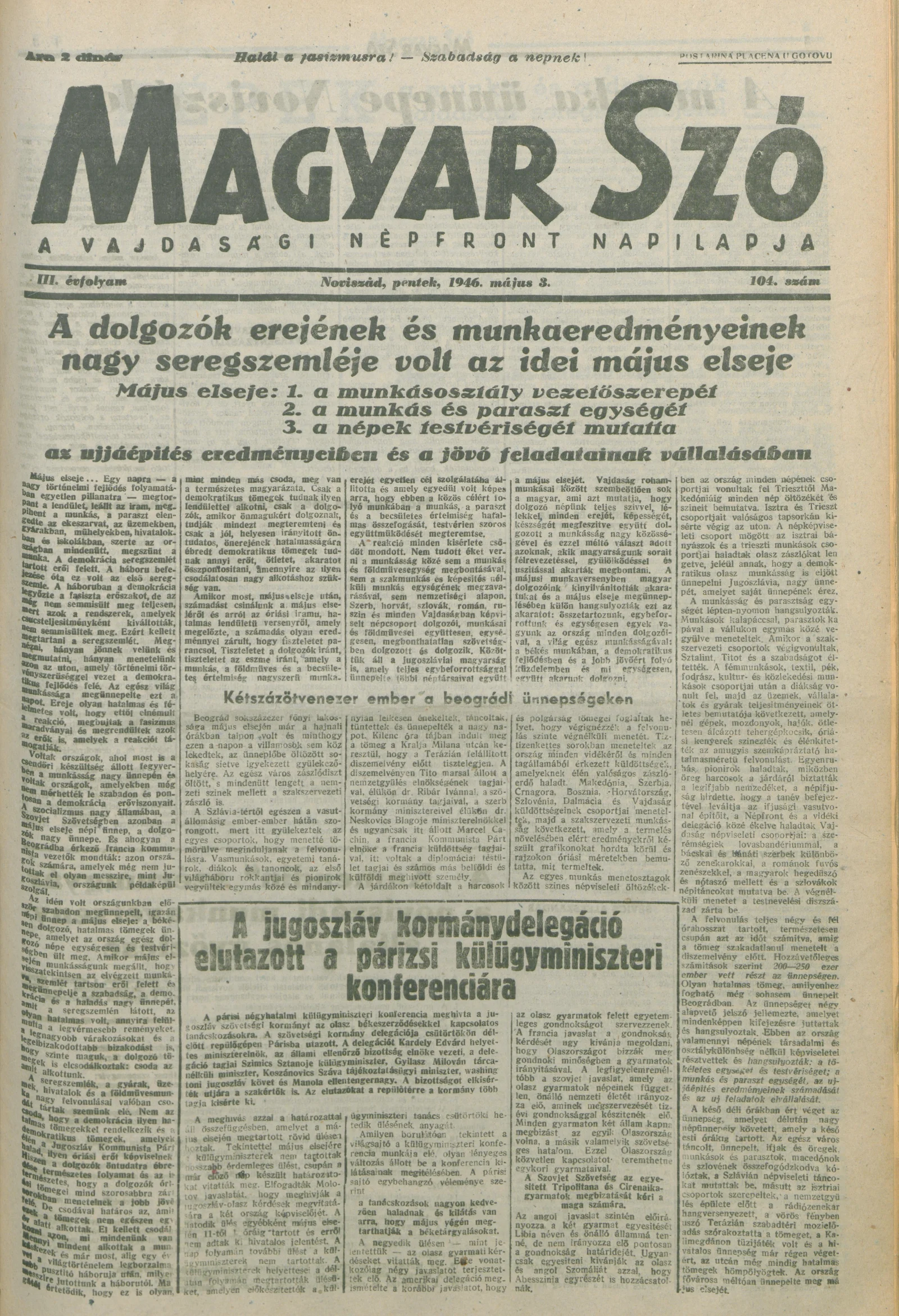 Magyar Szó, 3. évf. 1946. május 3. 104. sz. 1–6. oldal