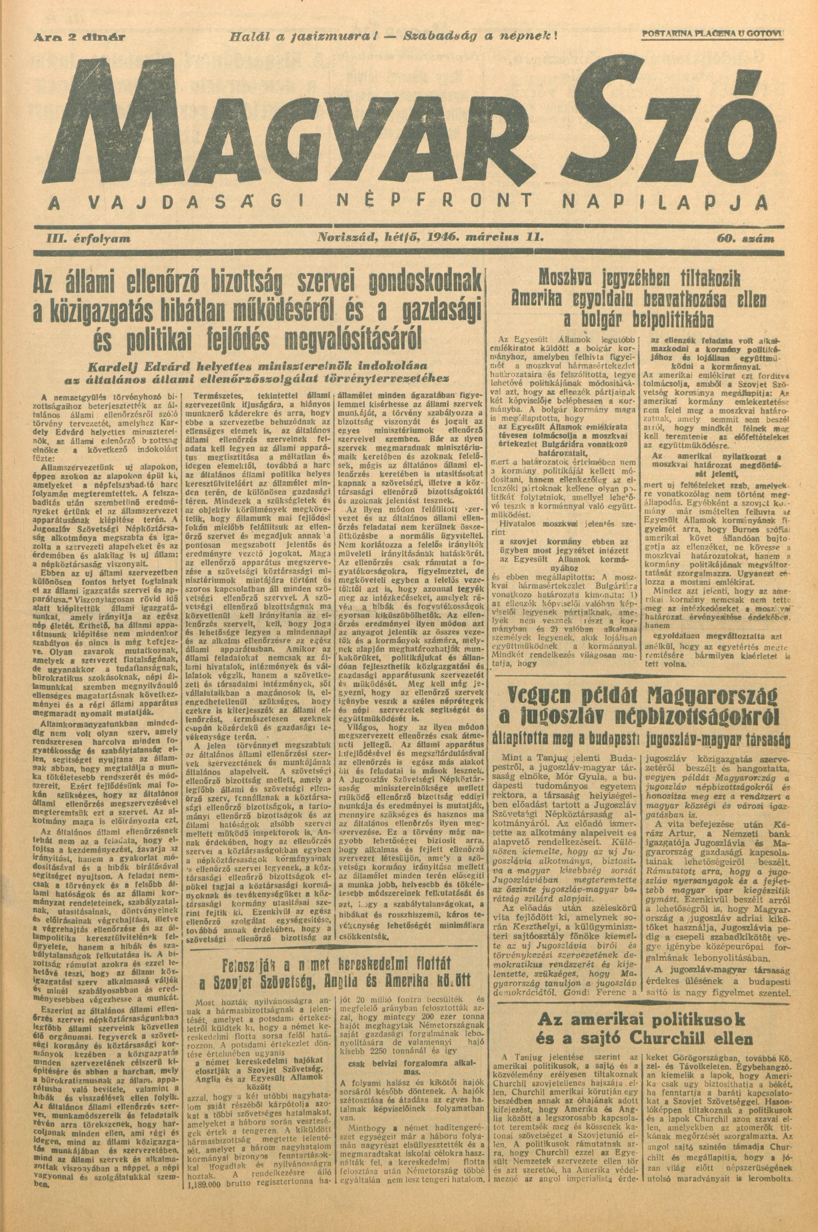 Magyar Szó, 3. évf. 1946. március 11. 60. sz. 1–6. oldal