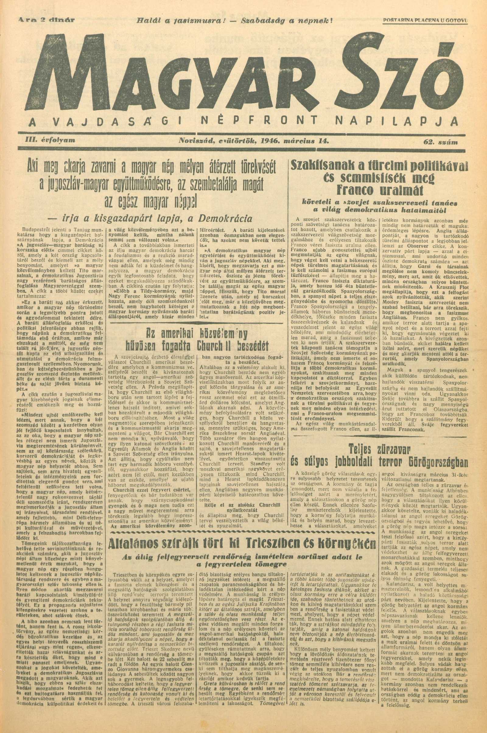 Magyar Szó, 3. évf. 1946. március 14. 62. sz. 1–6. oldal