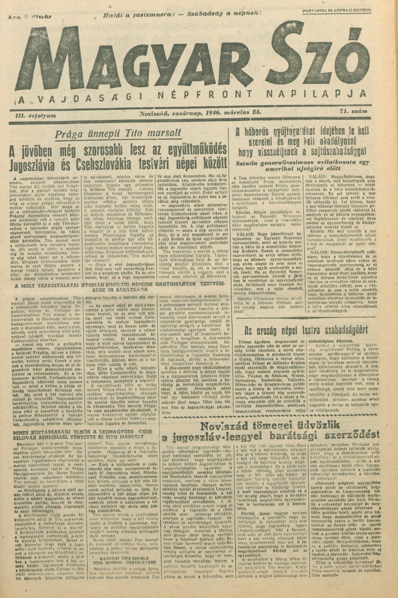 Magyar Szó, 3. évf. 1946. március 24. 71. sz. 1–8. oldal