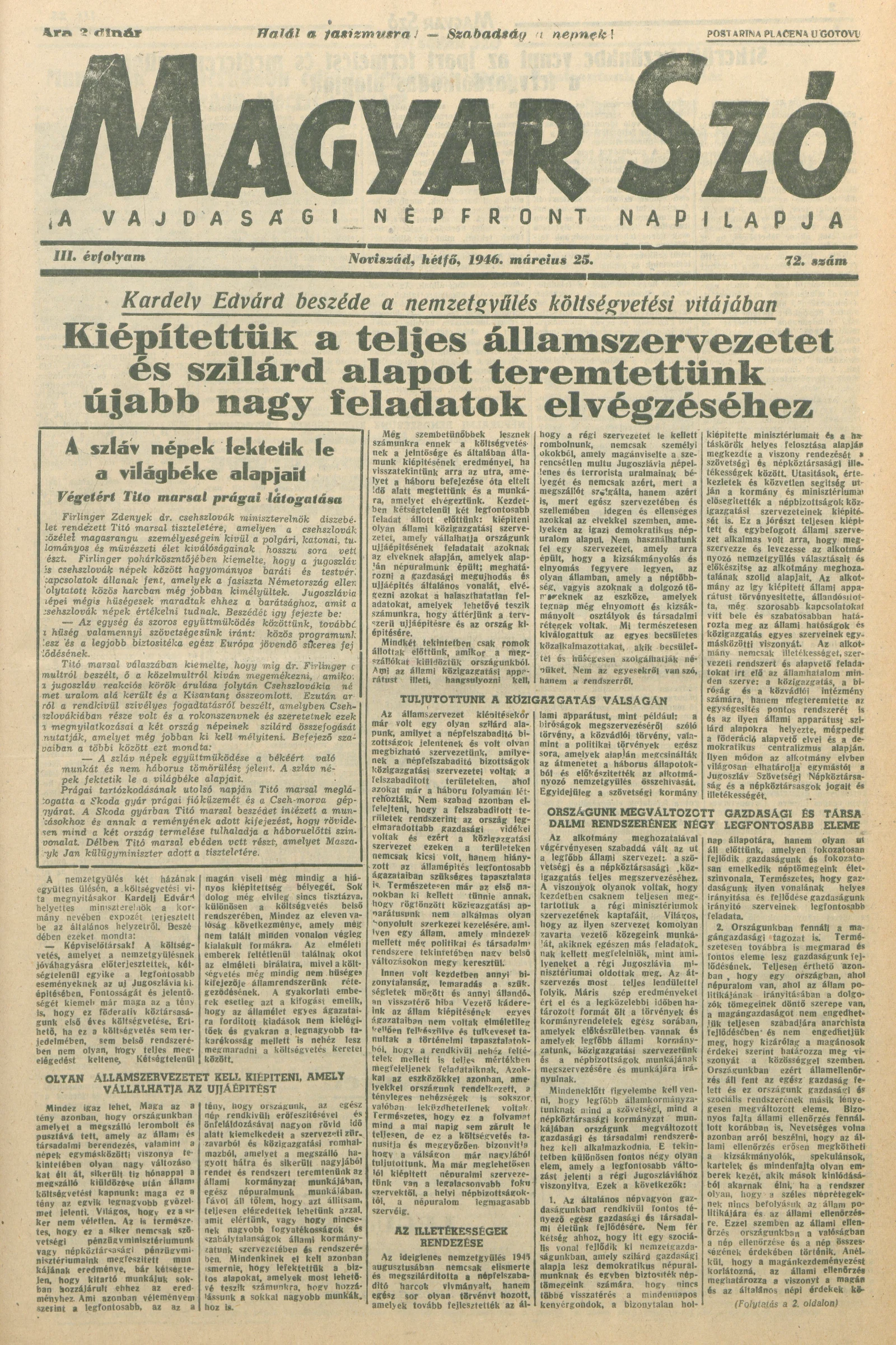Magyar Szó, 3. évf. 1946. március 25. 72. sz. 1–6. oldal