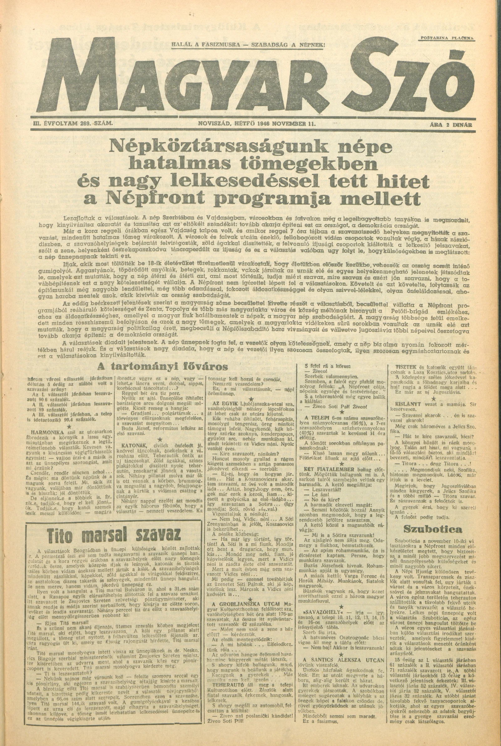 Magyar Szó, 3. évf. 1946. november 11. 269. sz. 1–6. oldal