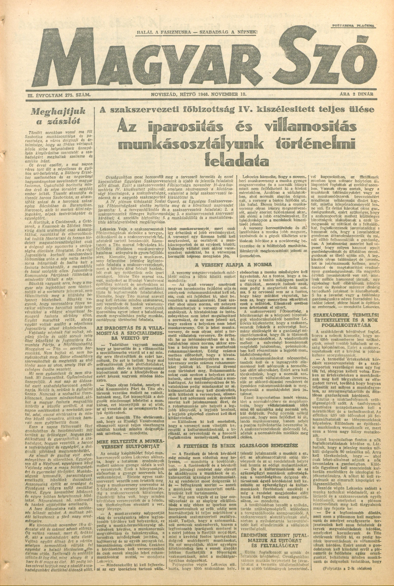 Magyar Szó, 3. évf. 1946. november 18. 275. sz. 1–6. oldal