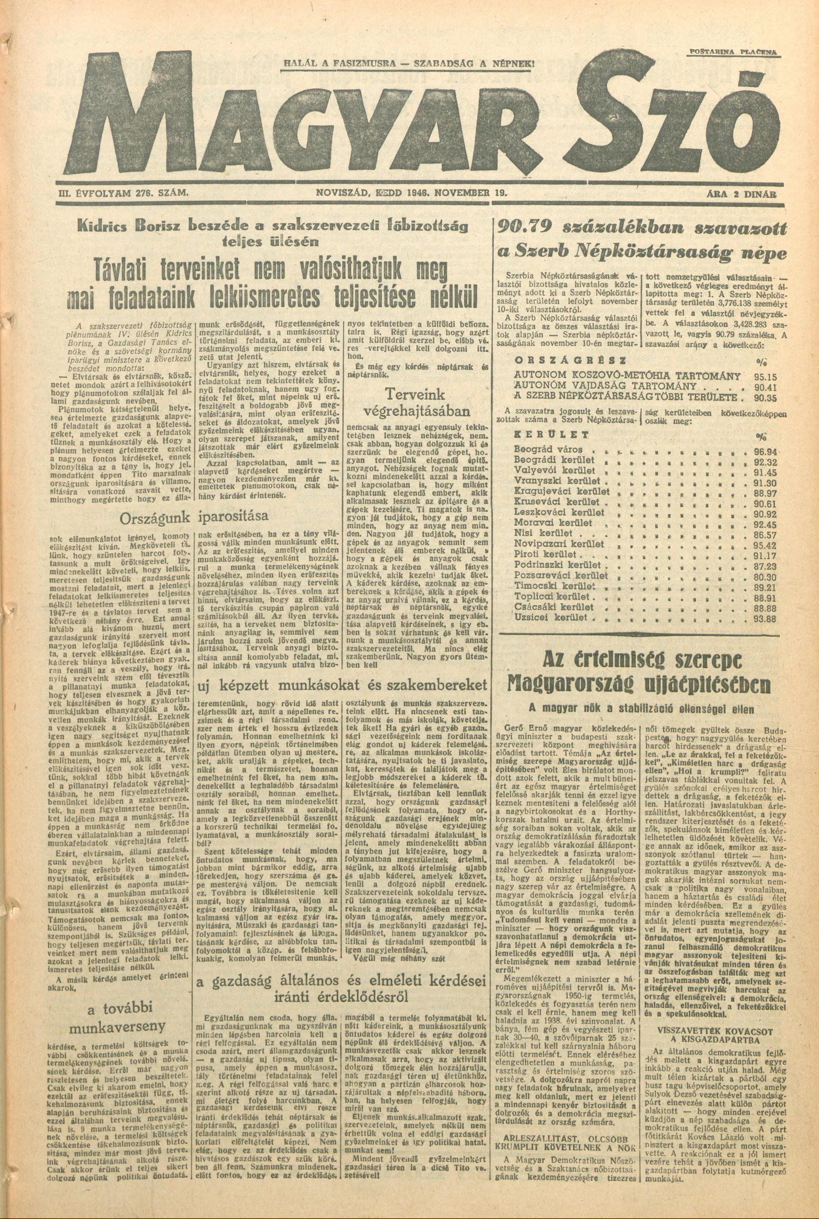 Magyar Szó, 3. évf. 1946. november 19. 276. sz. 1–6. oldal
