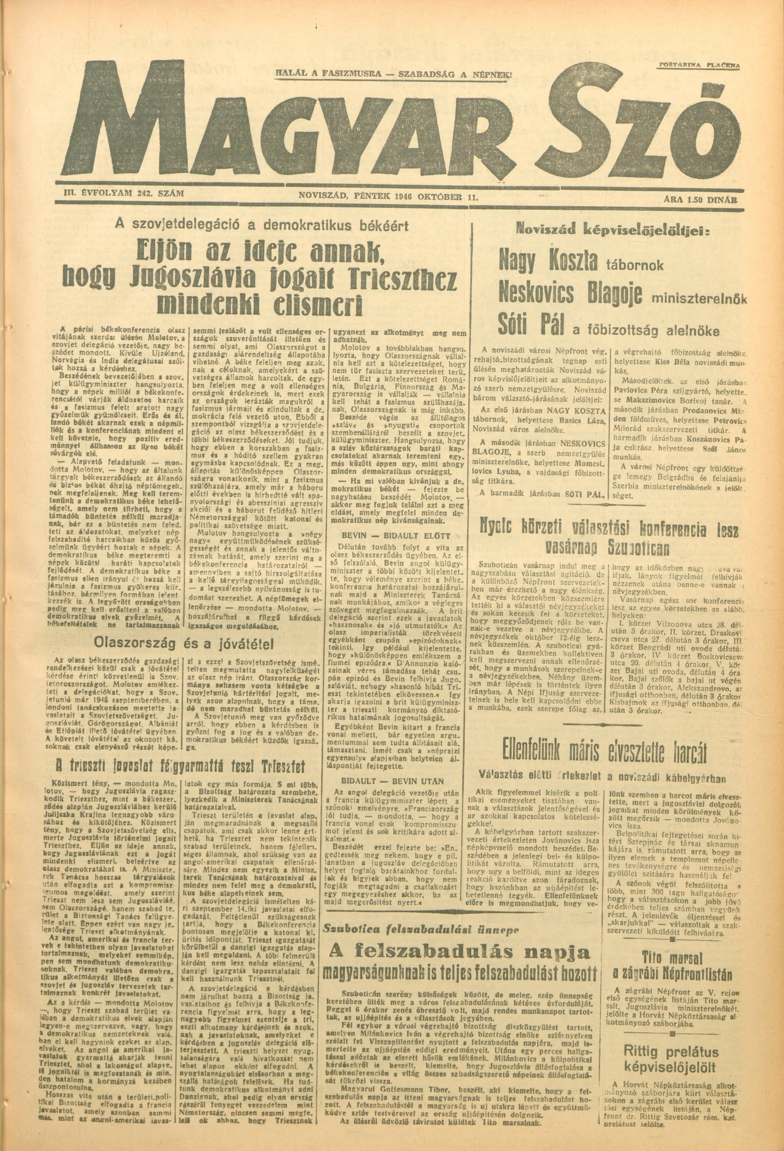 Magyar Szó, 3. évf. 1946. október 11. 242. sz. 1–4. oldal