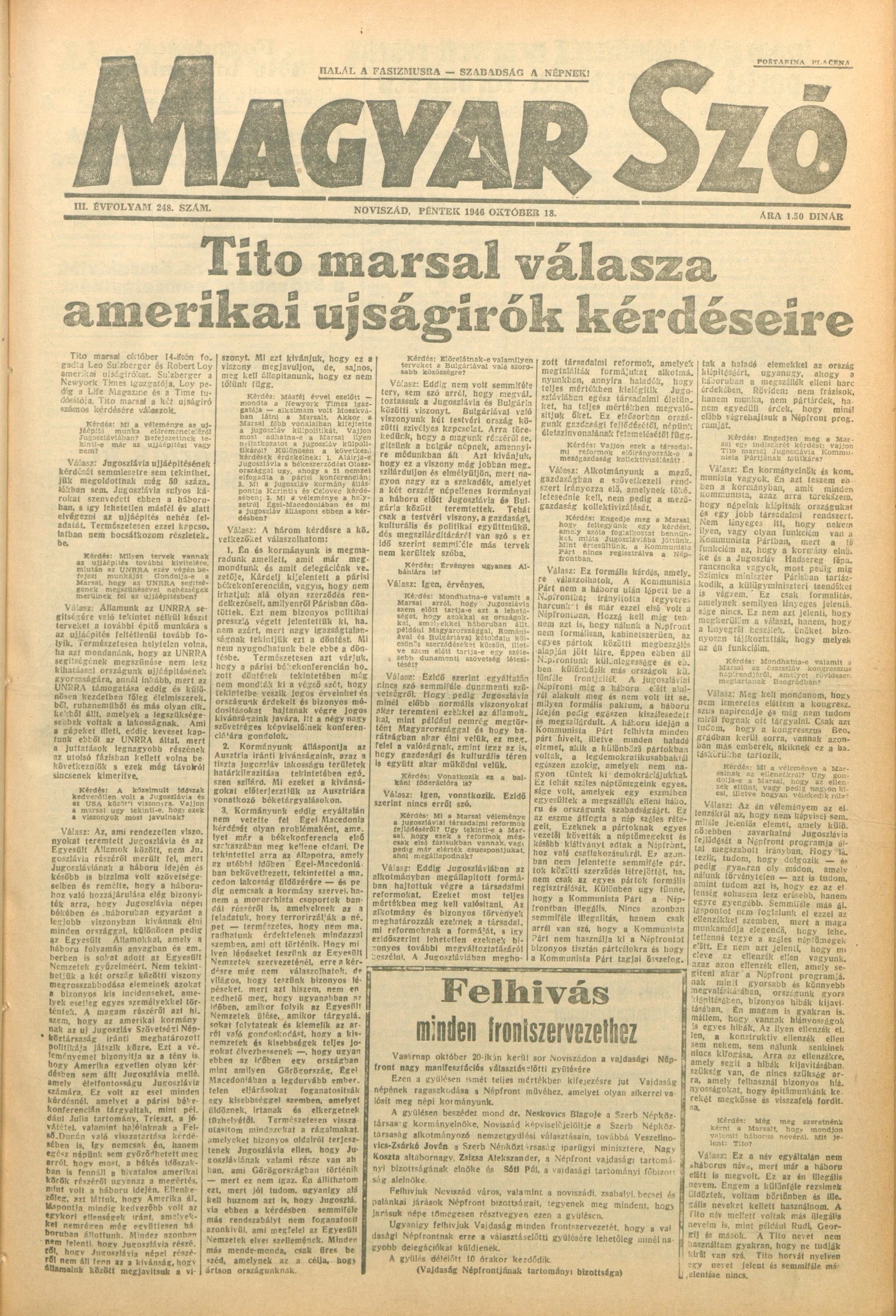 Magyar Szó, 3. évf. 1946. október 18. 248. sz. 1–6. oldal
