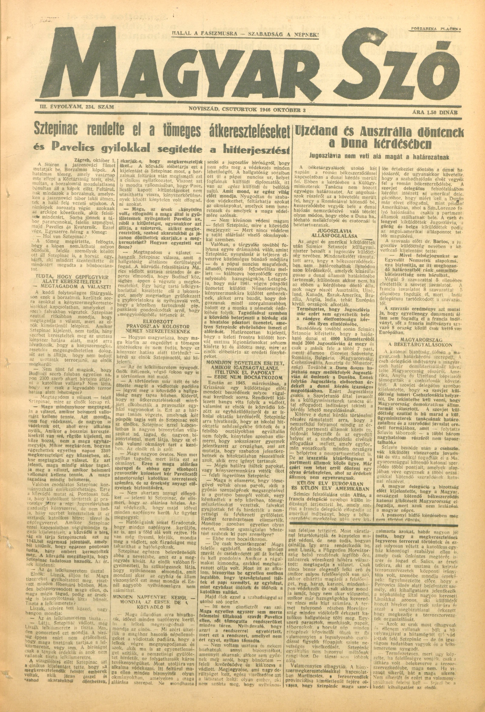 Magyar Szó, 3. évf. 1946. október 3. 234. sz. 1–4. oldal