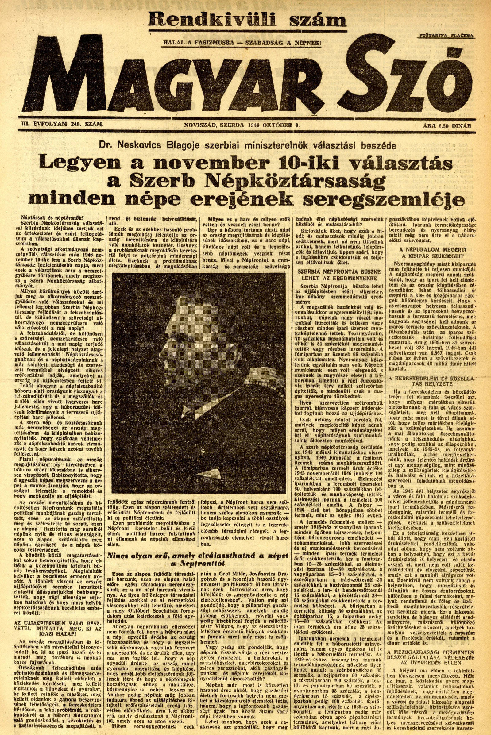 Magyar Szó, 3. évf. 1946. október 9. 240. sz. 1–6. oldal