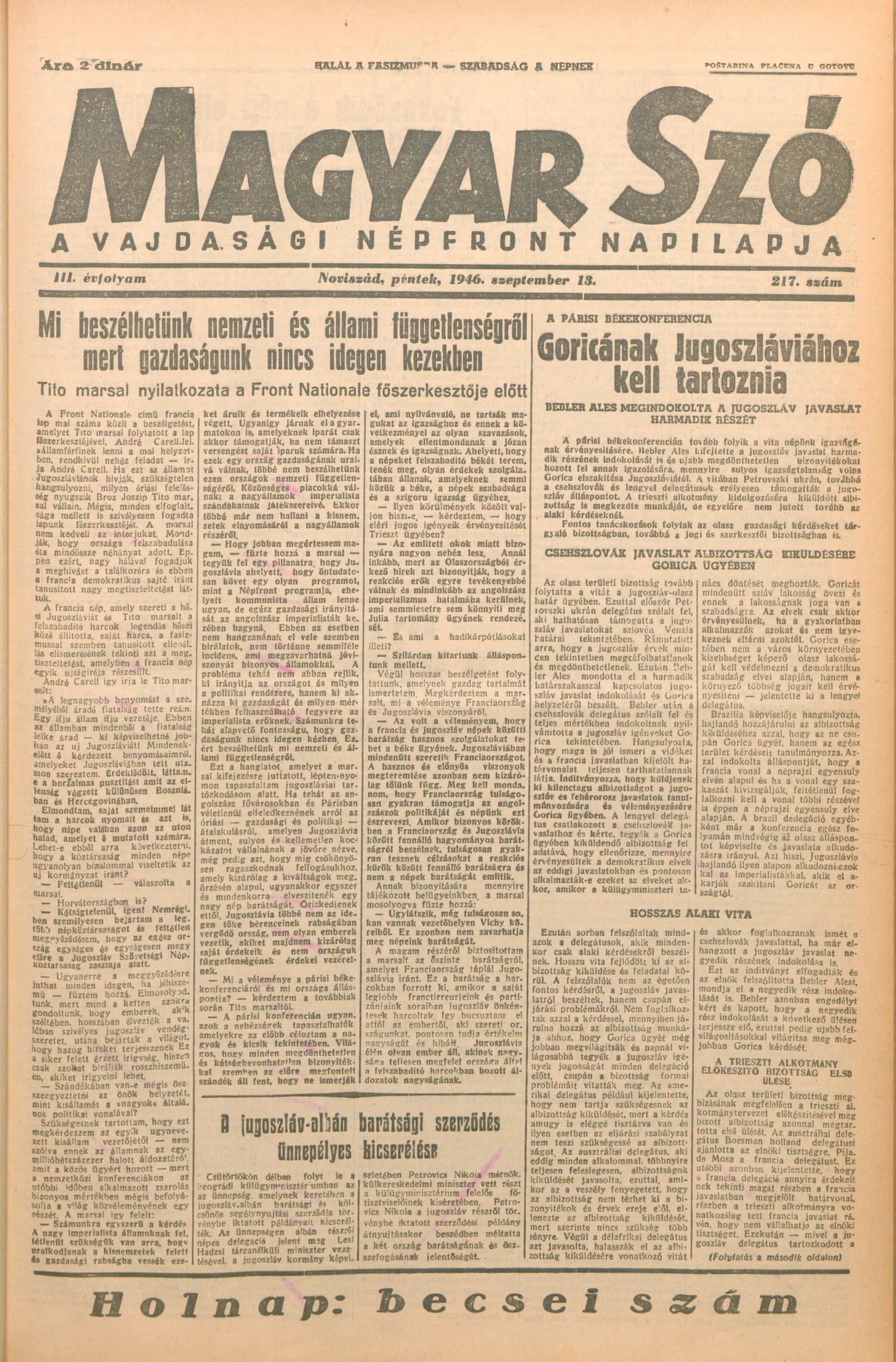Magyar Szó, 3. évf. 1946. szeptember 13. 217. sz. 1–6. oldal