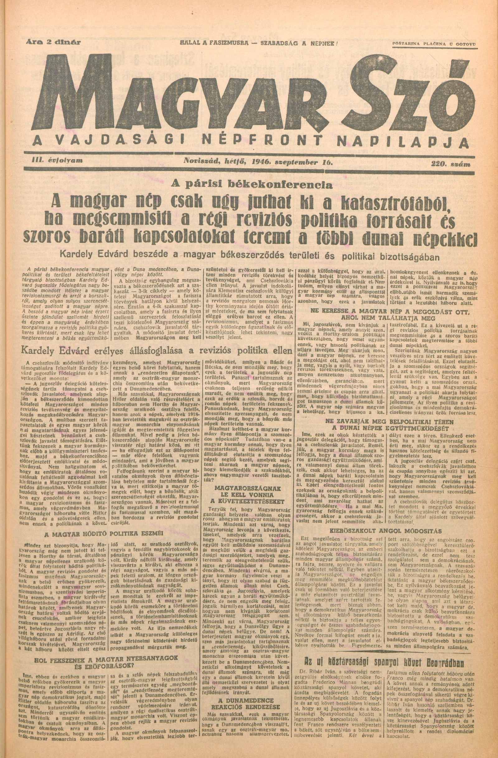 Magyar Szó, 3. évf. 1946. szeptember 16. 220. sz. 1–6. oldal