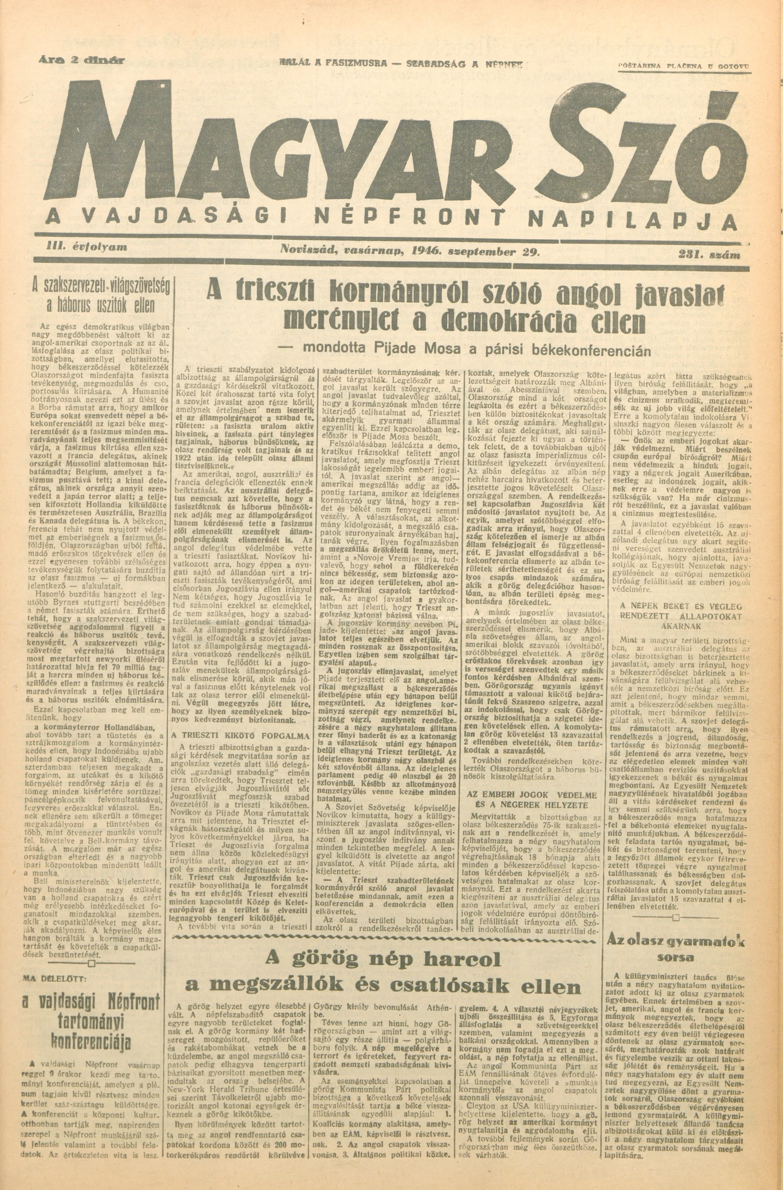 Magyar Szó, 3. évf. 1946. szeptember 29. 231. sz. 1–4. oldal