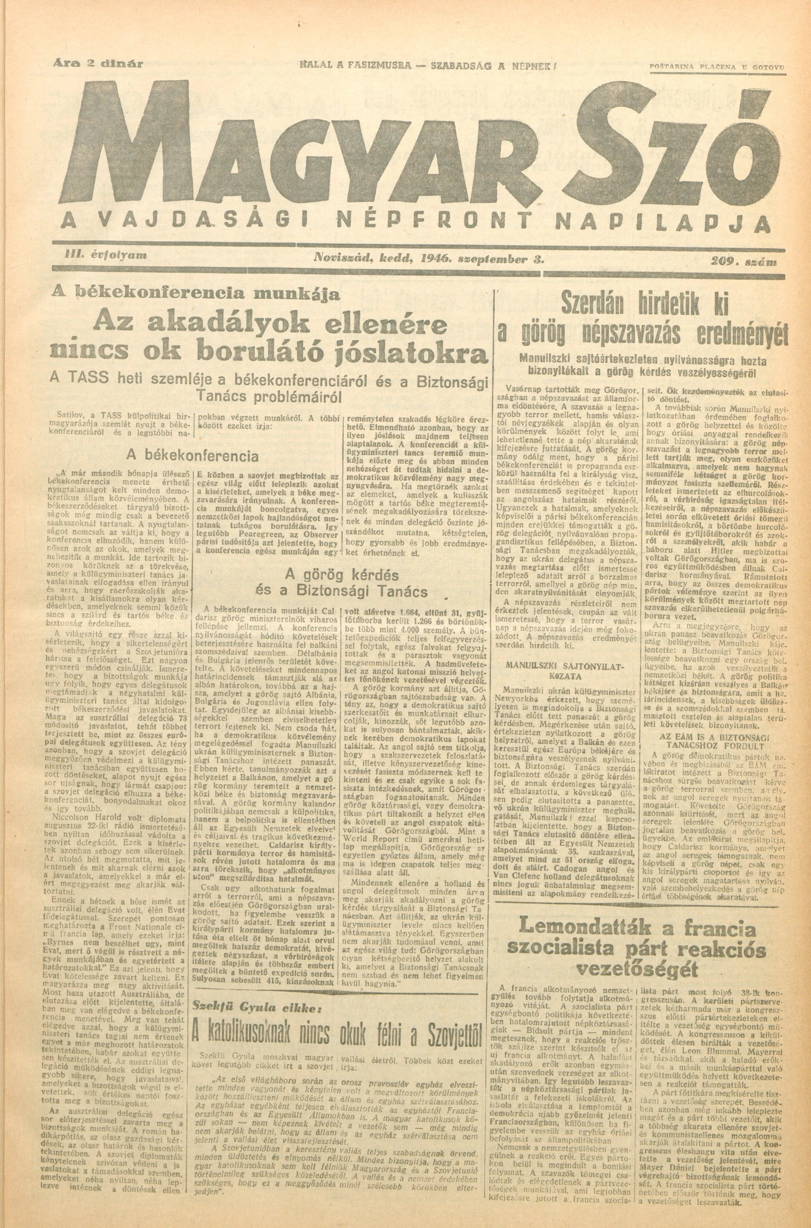 Magyar Szó, 3. évf. 1946. szeptember 3. 209. sz. 1–6. oldal