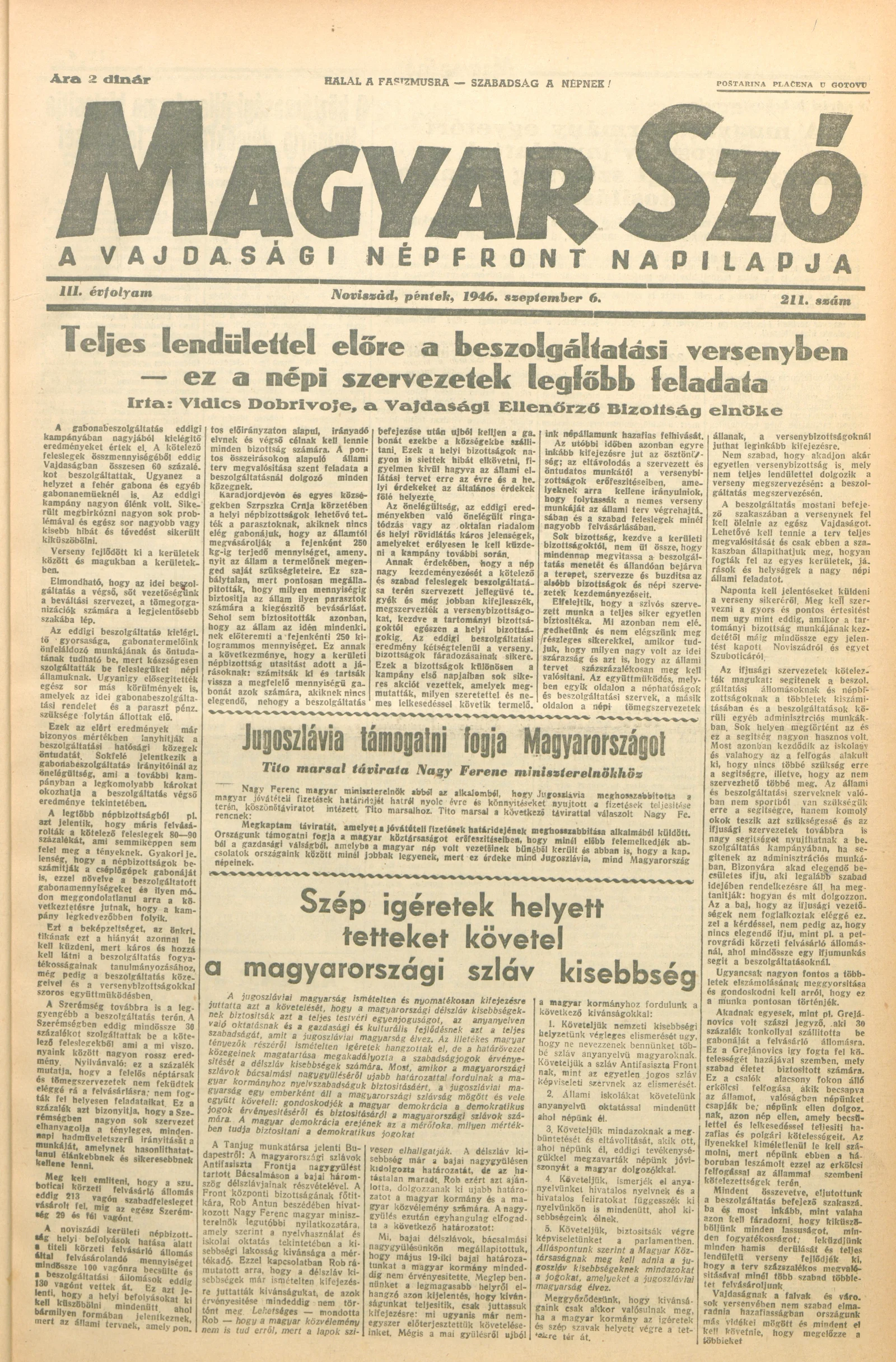 Magyar Szó, 3. évf. 1946. szeptember 6. 211. sz. 1–6. oldal
