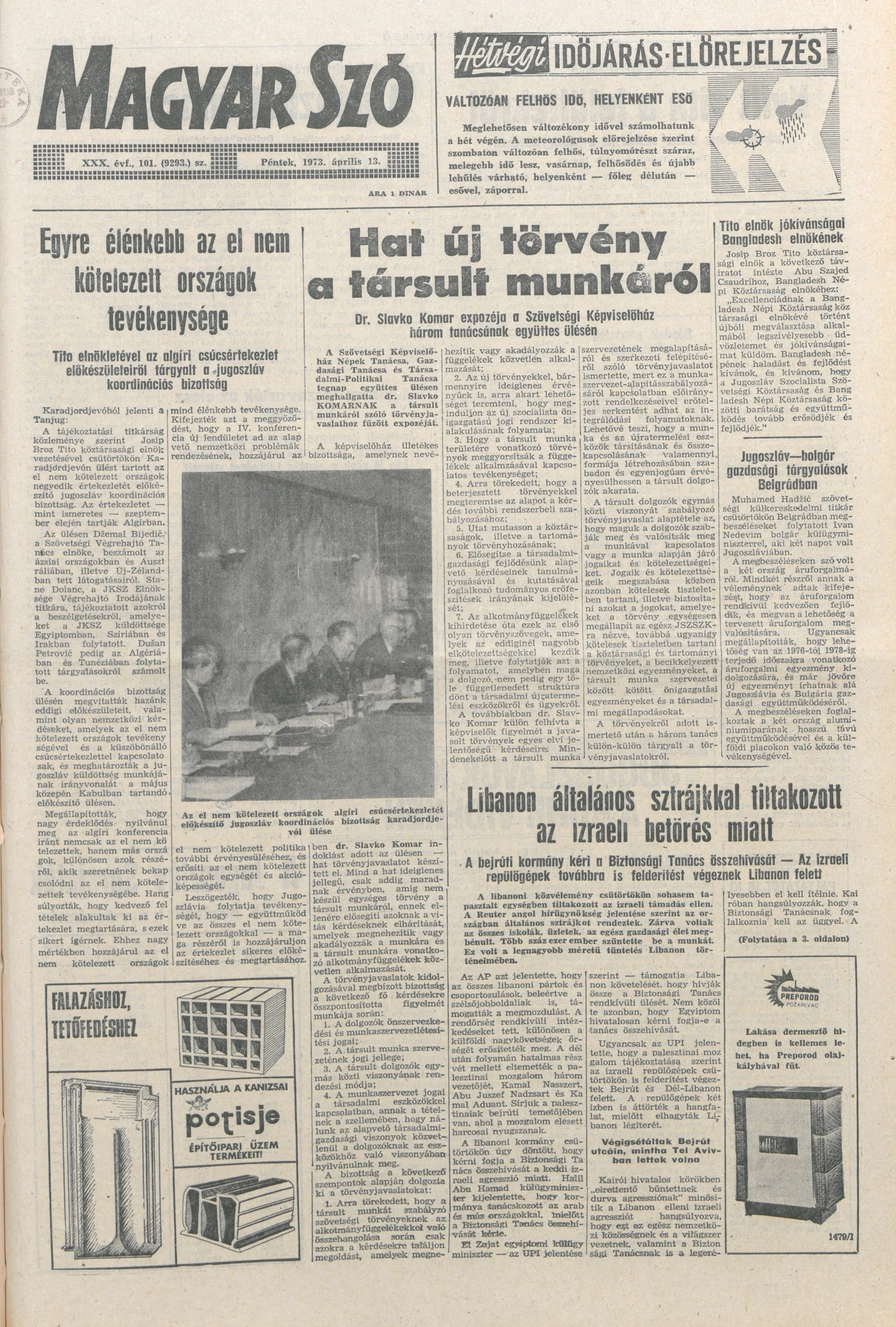 Magyar Szó, 30. évf. 1973. április 13. 101. sz. 1–14. oldal