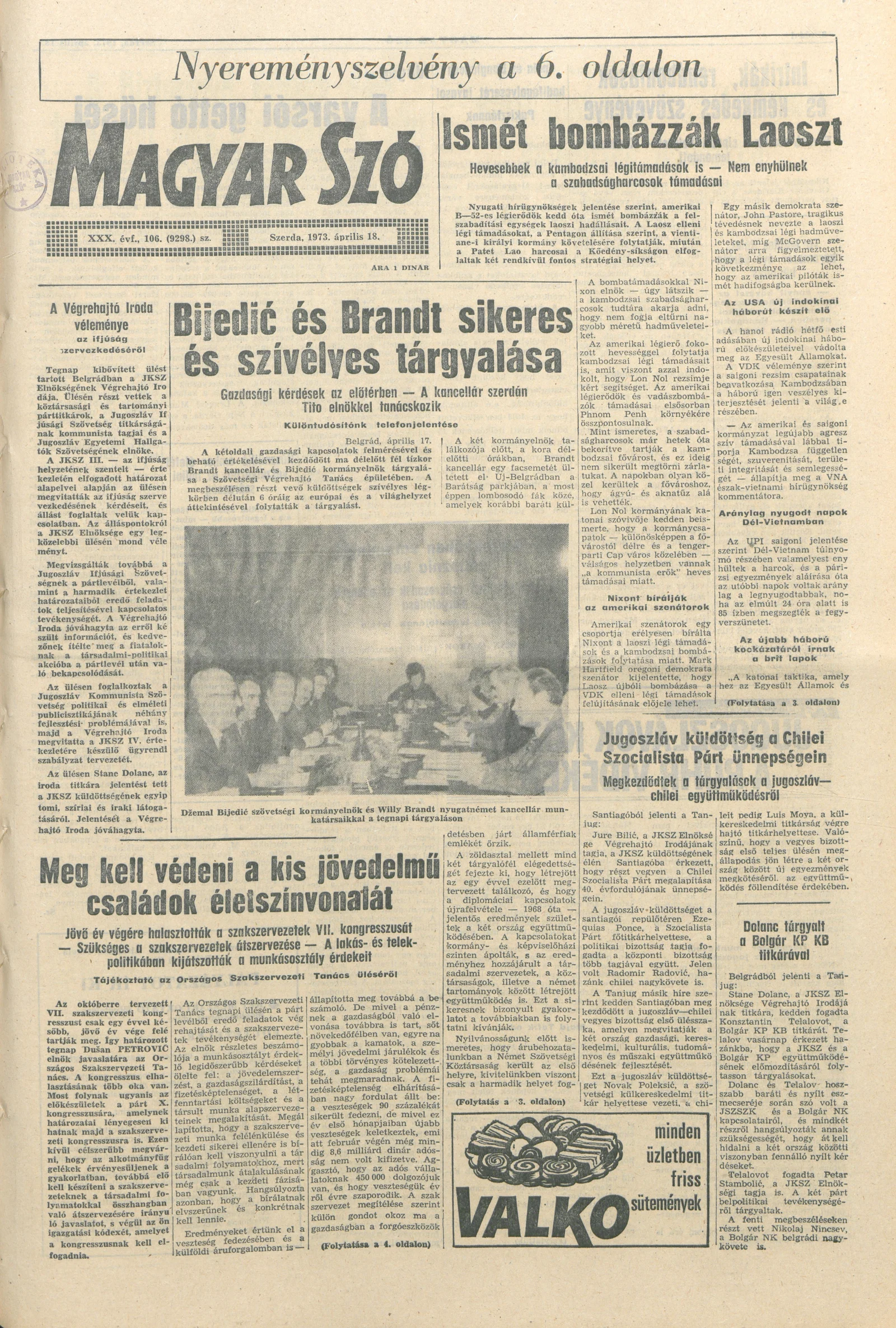 Magyar Szó, 30. évf. 1973. április 18. 106. sz. 1–20. oldal