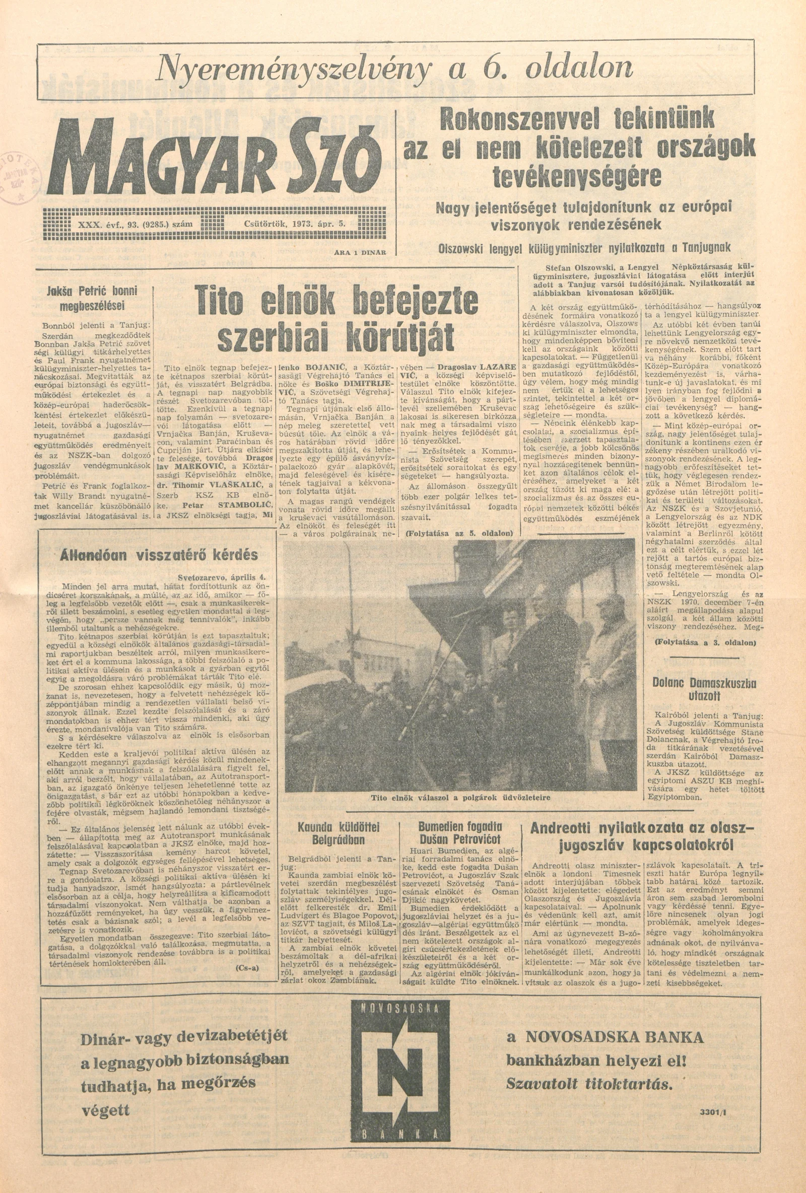 Magyar Szó, 30. évf. 1973. április 5. 93. sz. 1–16. oldal