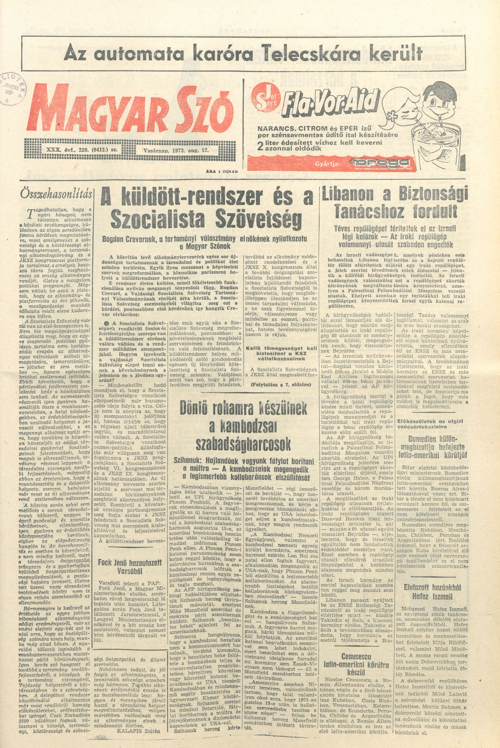 Magyar Szó, 30. évf. 1973. augusztus 12. 220. sz. 1–32. oldal