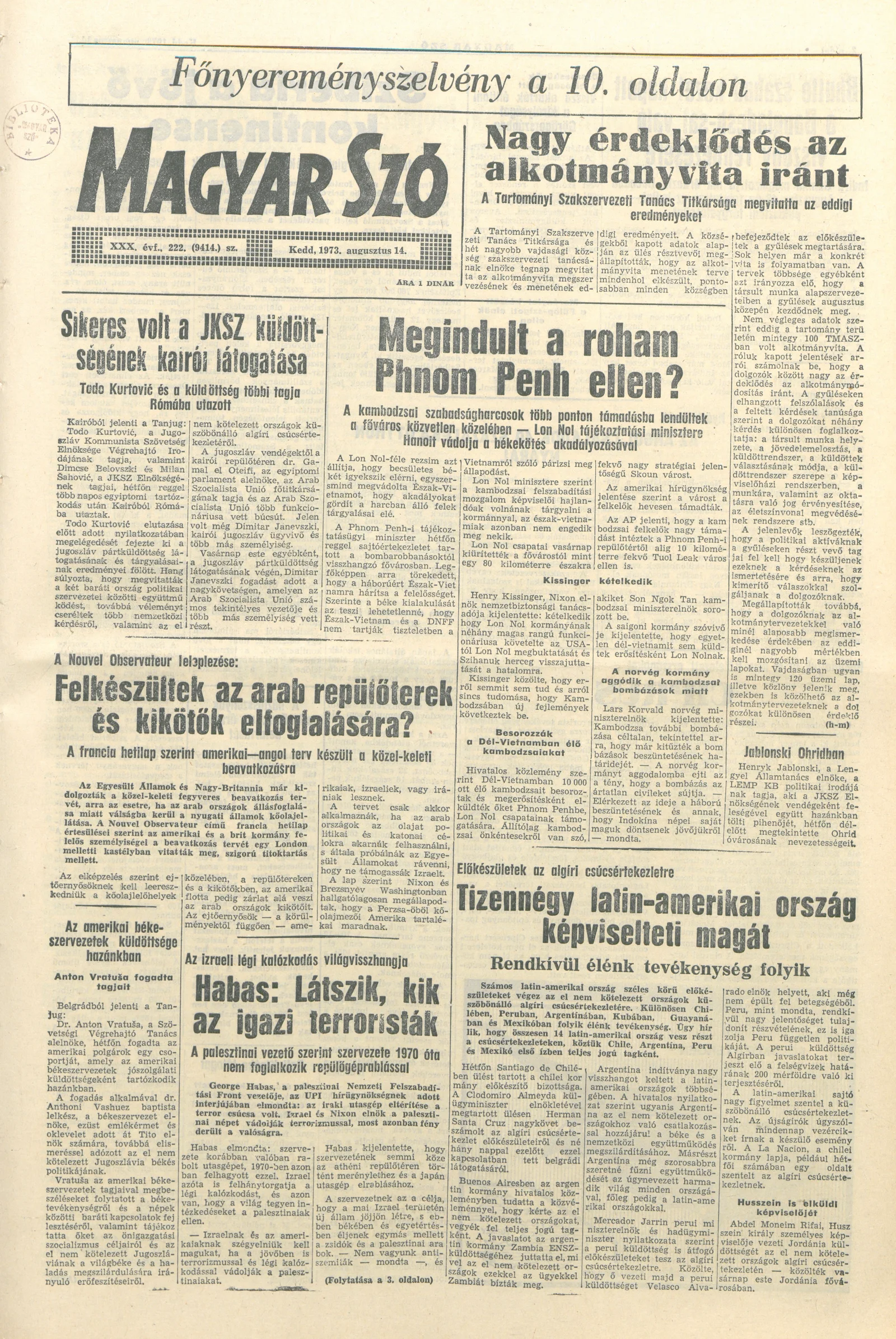 Magyar Szó, 30. évf. 1973. augusztus 14. 222. sz. 1–16. oldal