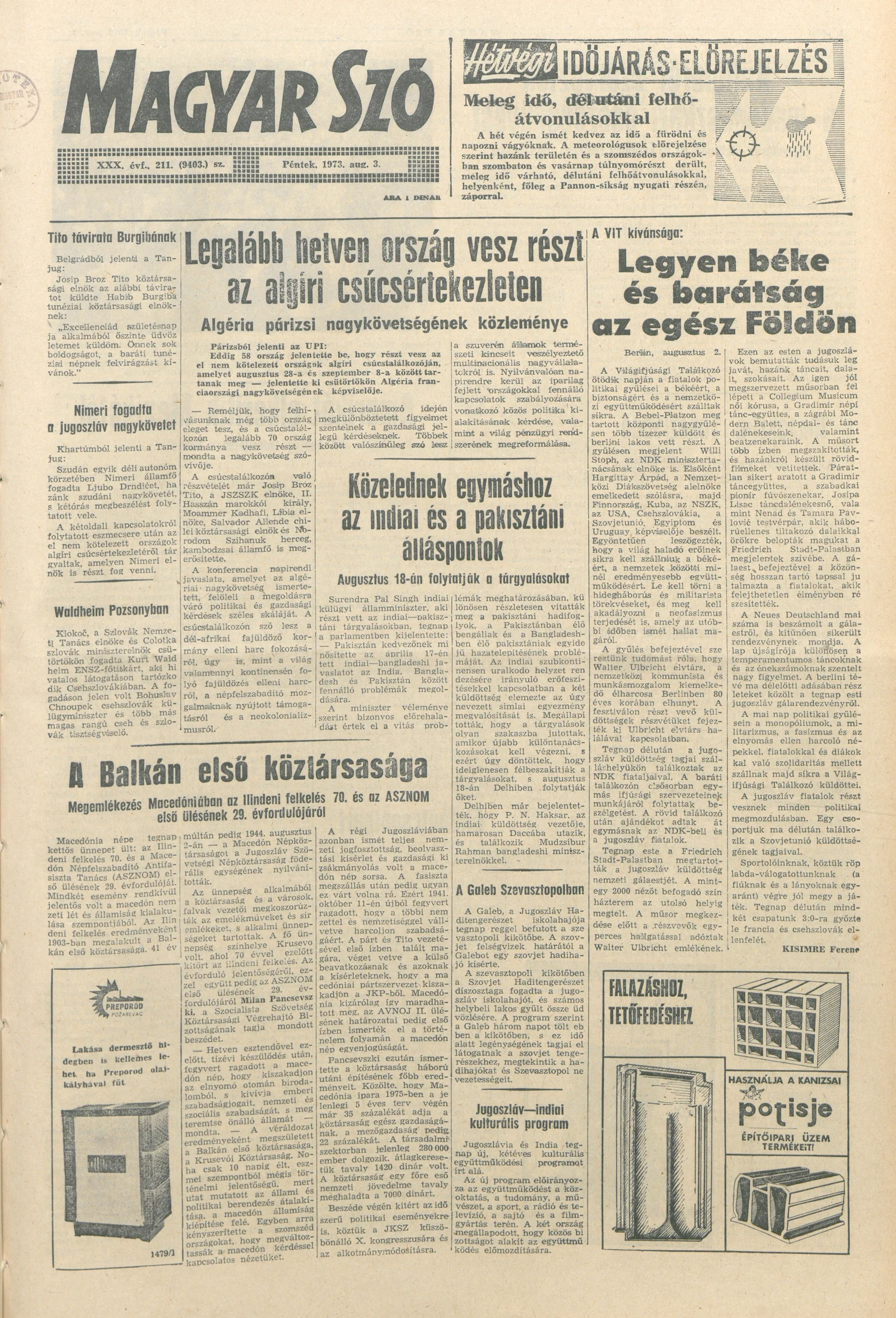 Magyar Szó, 30. évf. 1973. augusztus 3. 211. sz. 1–14. oldal