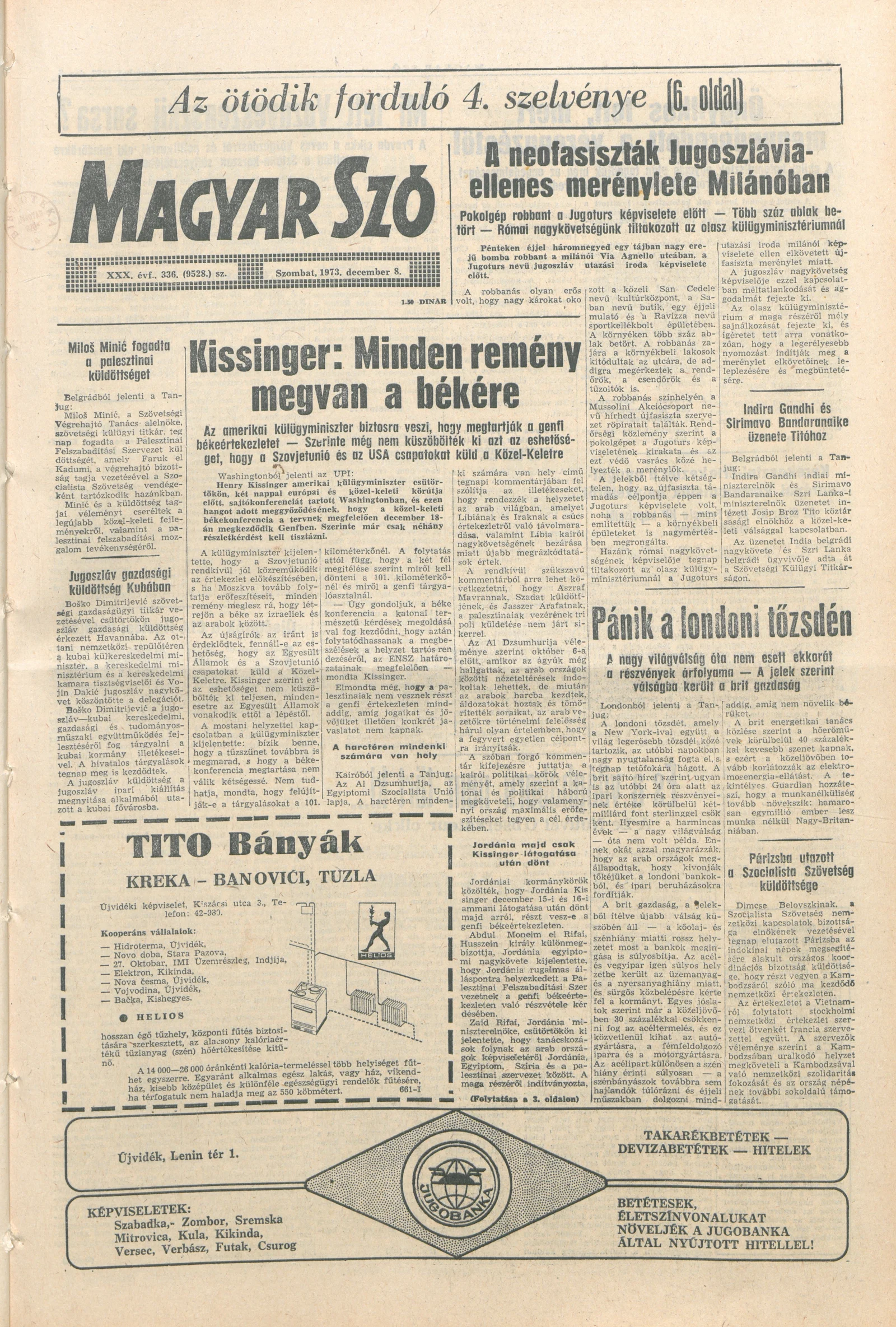 Magyar Szó, 30. évf. 1973. december 8. 336. sz.