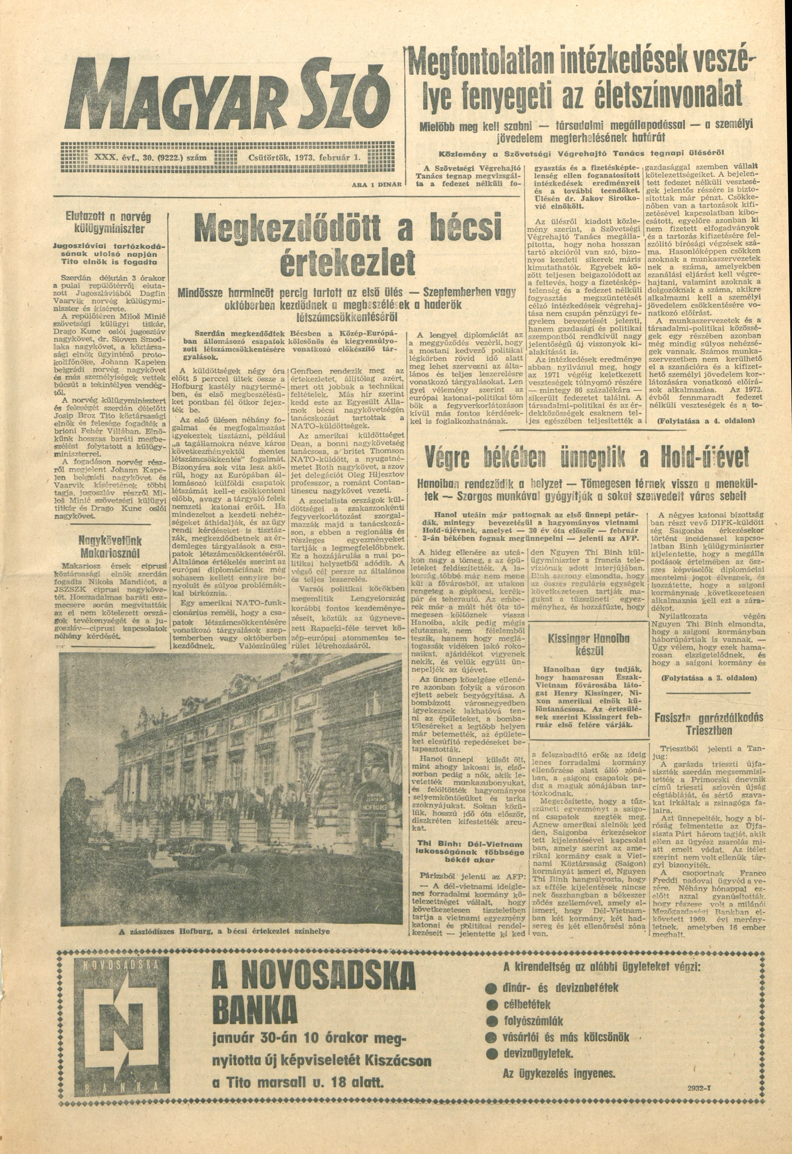 Magyar Szó, 30. évf. 1973. február 1. 30. sz. 1–16. oldal