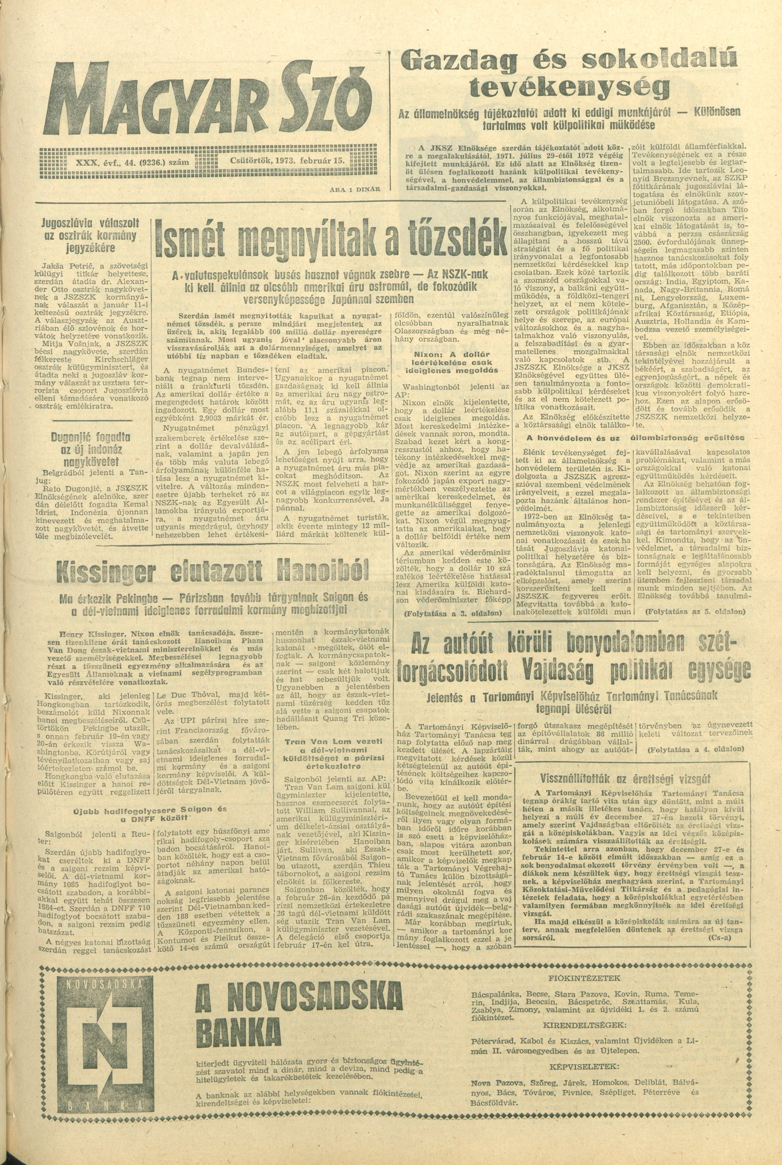Magyar Szó, 30. évf. 1973. február 15. 44. sz. 1–16. oldal