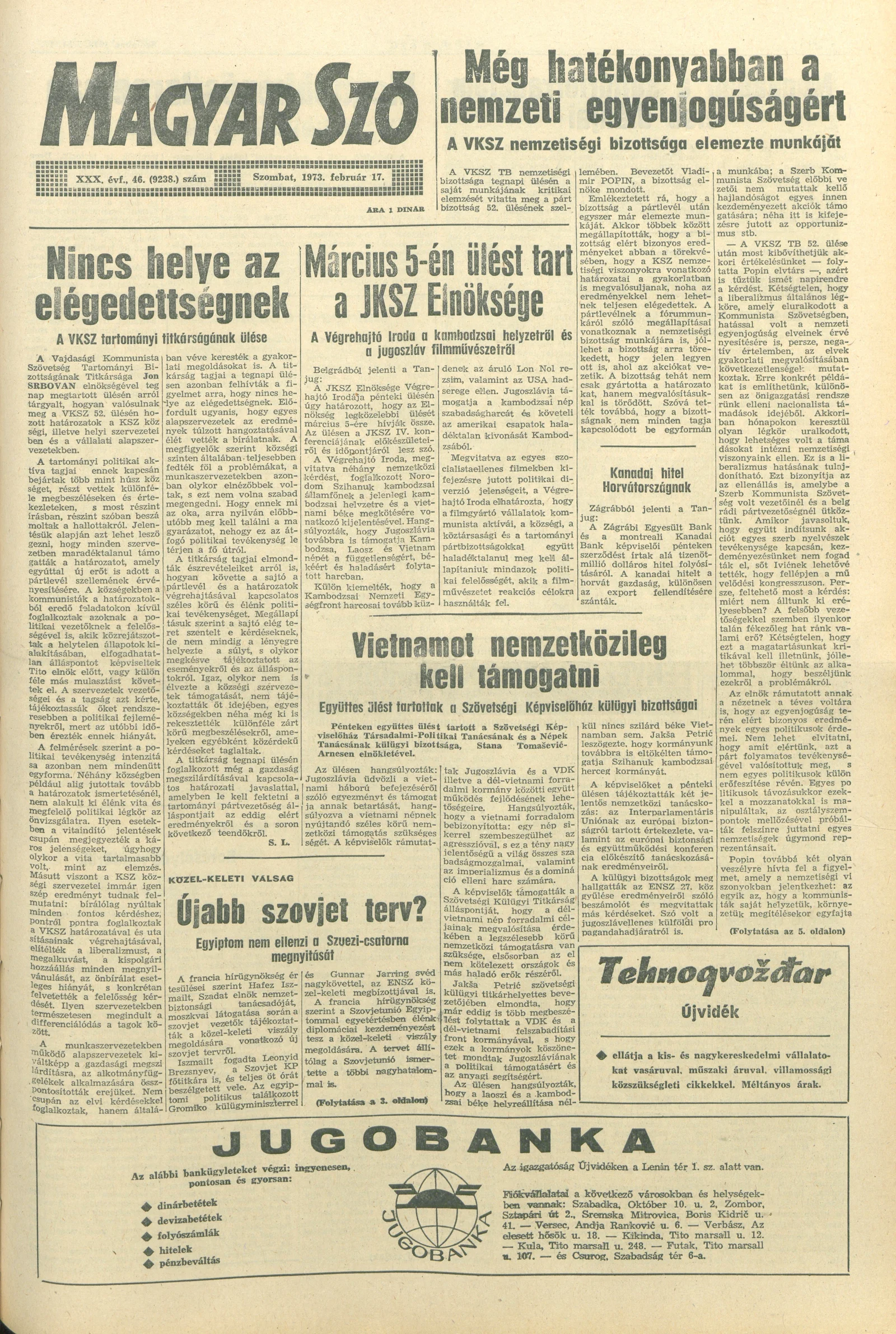 Magyar Szó, 30. évf. 1973. február 17. 46. sz. 1–20. oldal