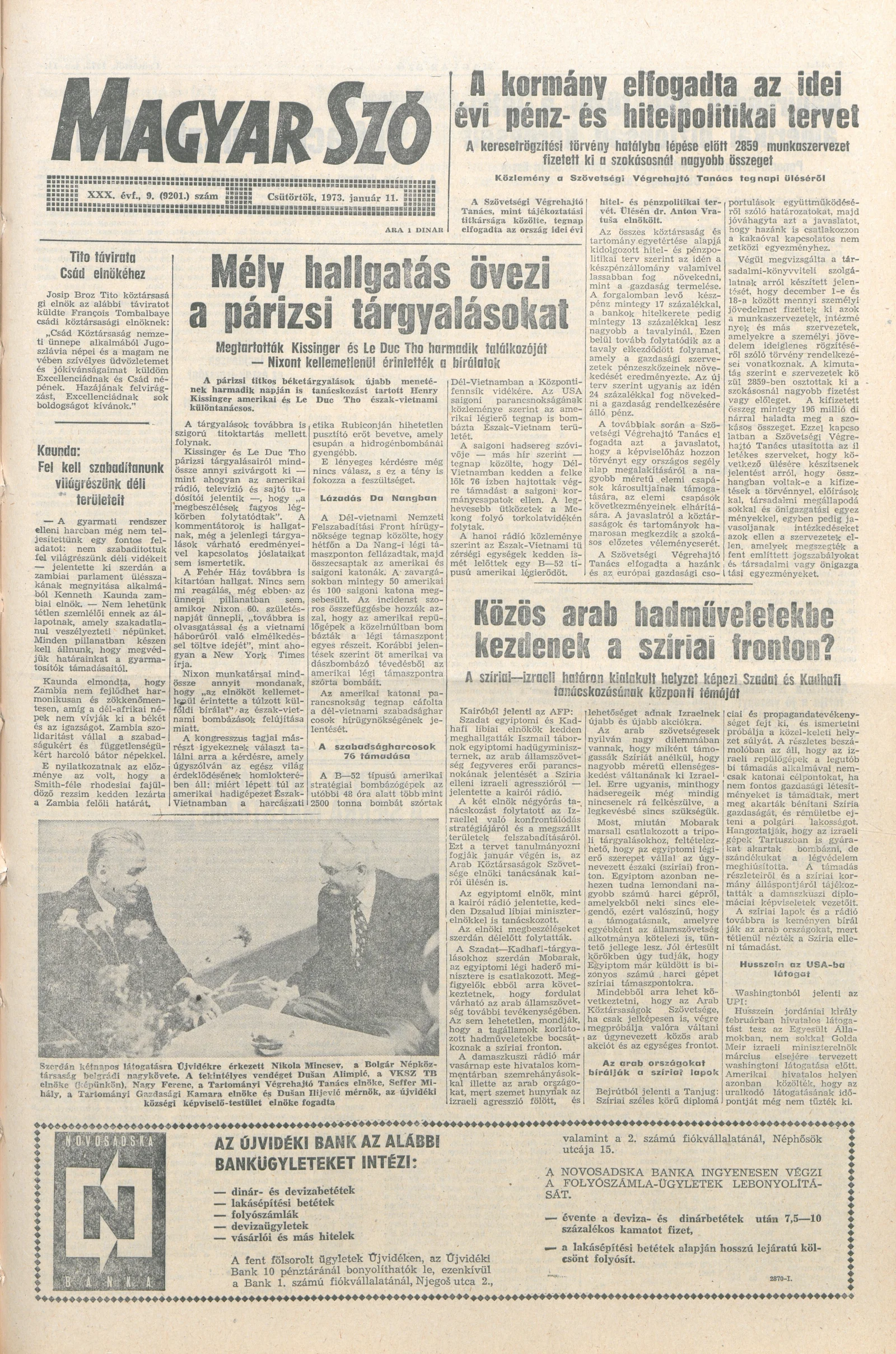 Magyar Szó, 30. évf. 1973. január 11. 9. sz. 1–16. oldal