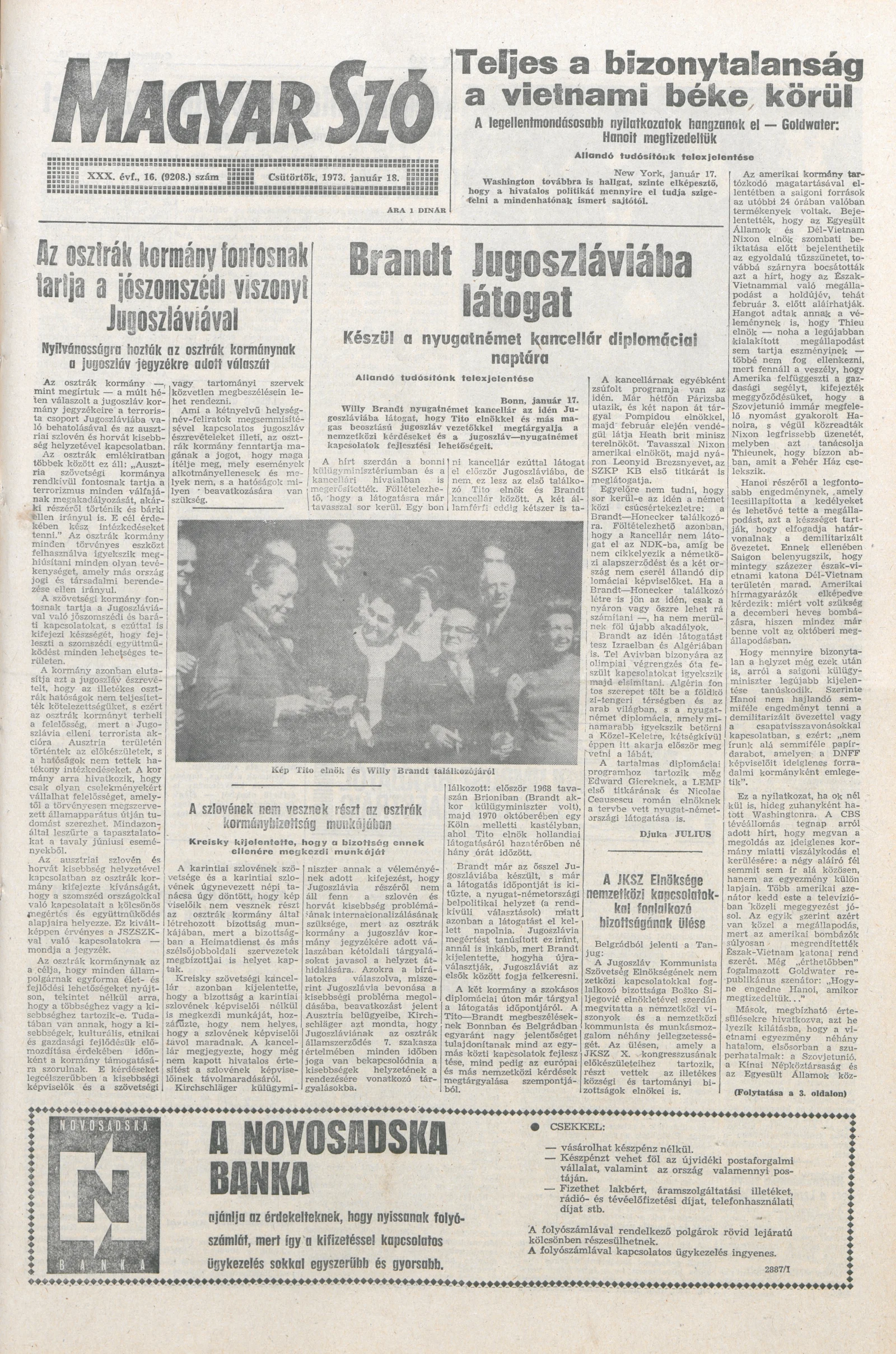 Magyar Szó, 30. évf. 1973. január 18. 16. sz. 1–16. oldal