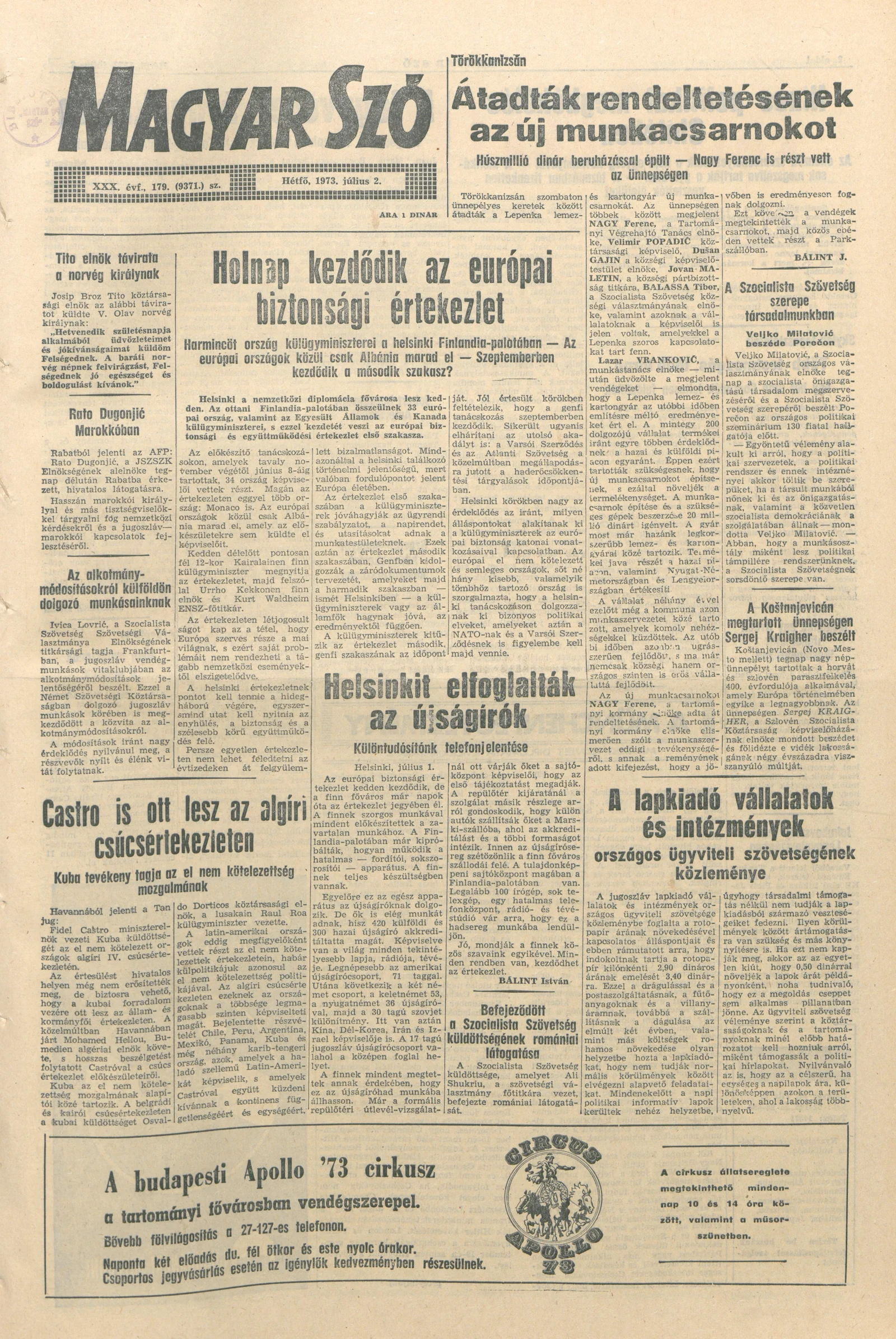 Magyar Szó, 30. évf. 1973. július 2. 179. sz. 1–8. oldal