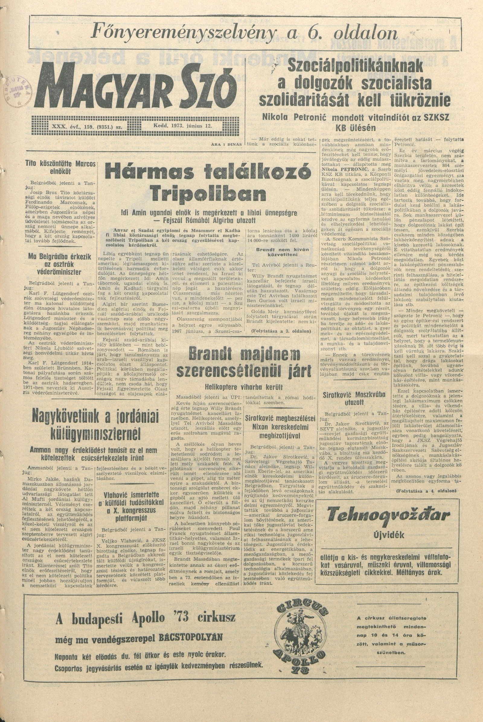 Magyar Szó, 30. évf. 1973. június 12. 159. sz. 1–20. oldal