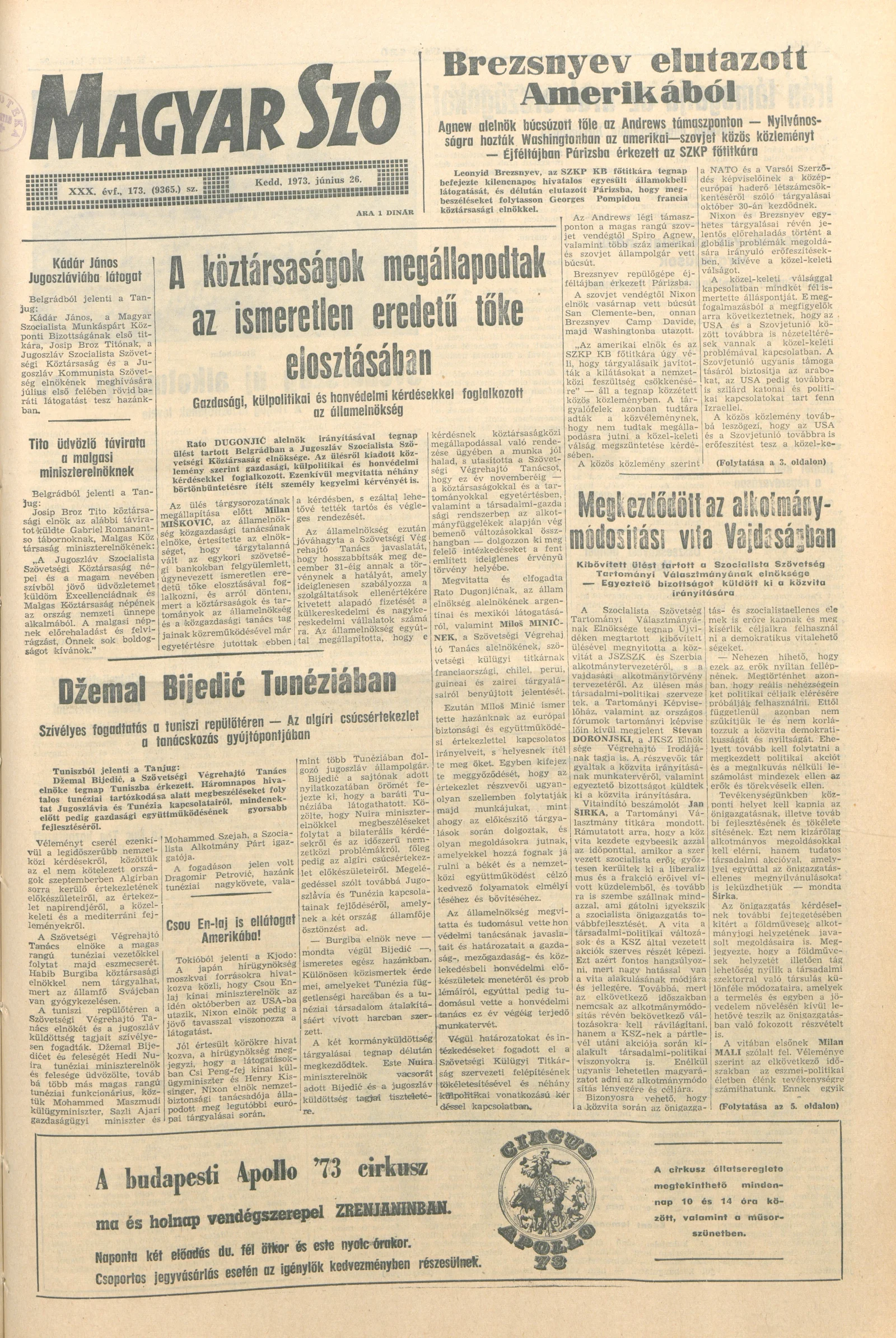 Magyar Szó, 30. évf. 1973. június 26. 173. sz. 1–20. oldal