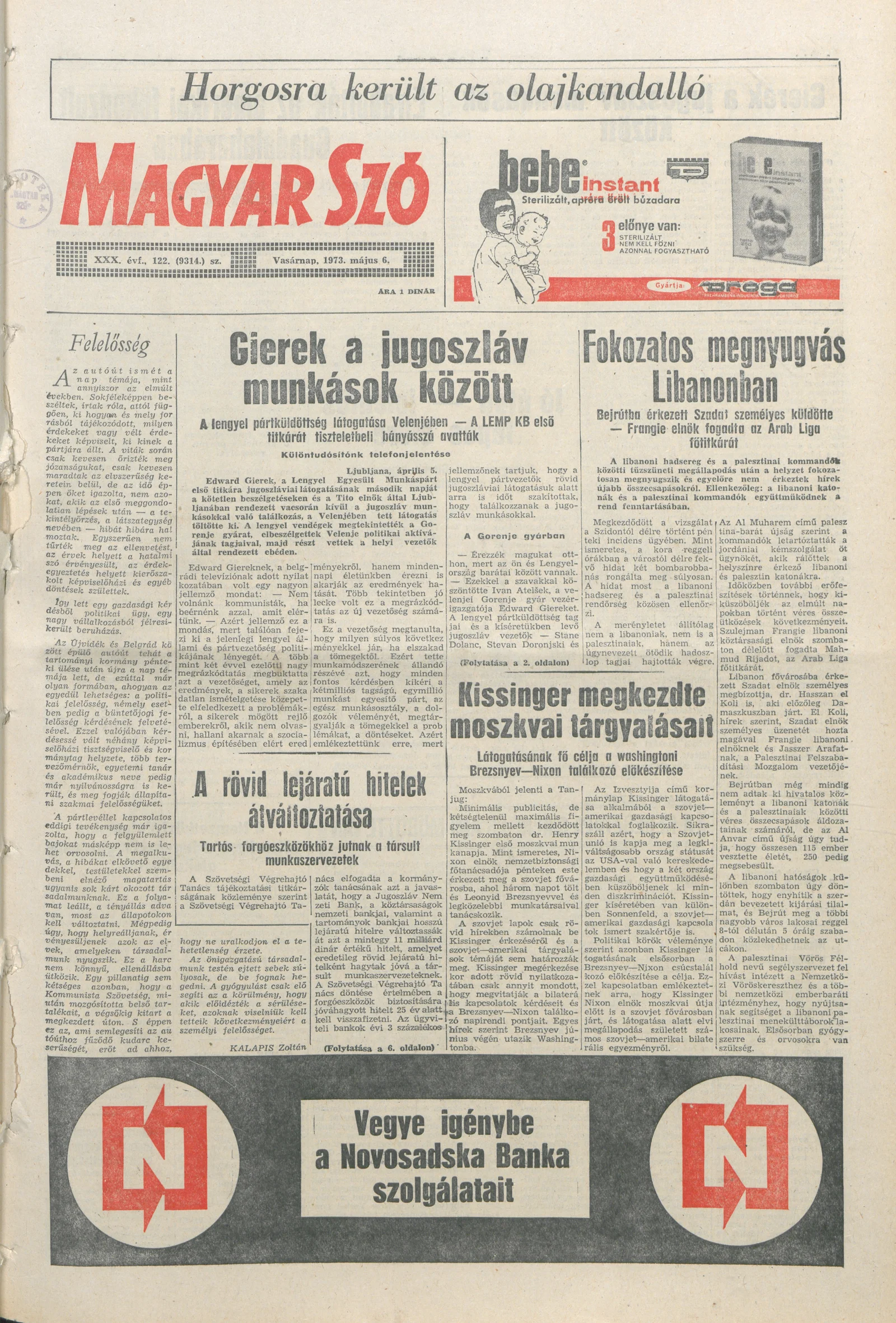 Magyar Szó, 30. évf. 1973. május 6. 122. sz. 1–32. oldal