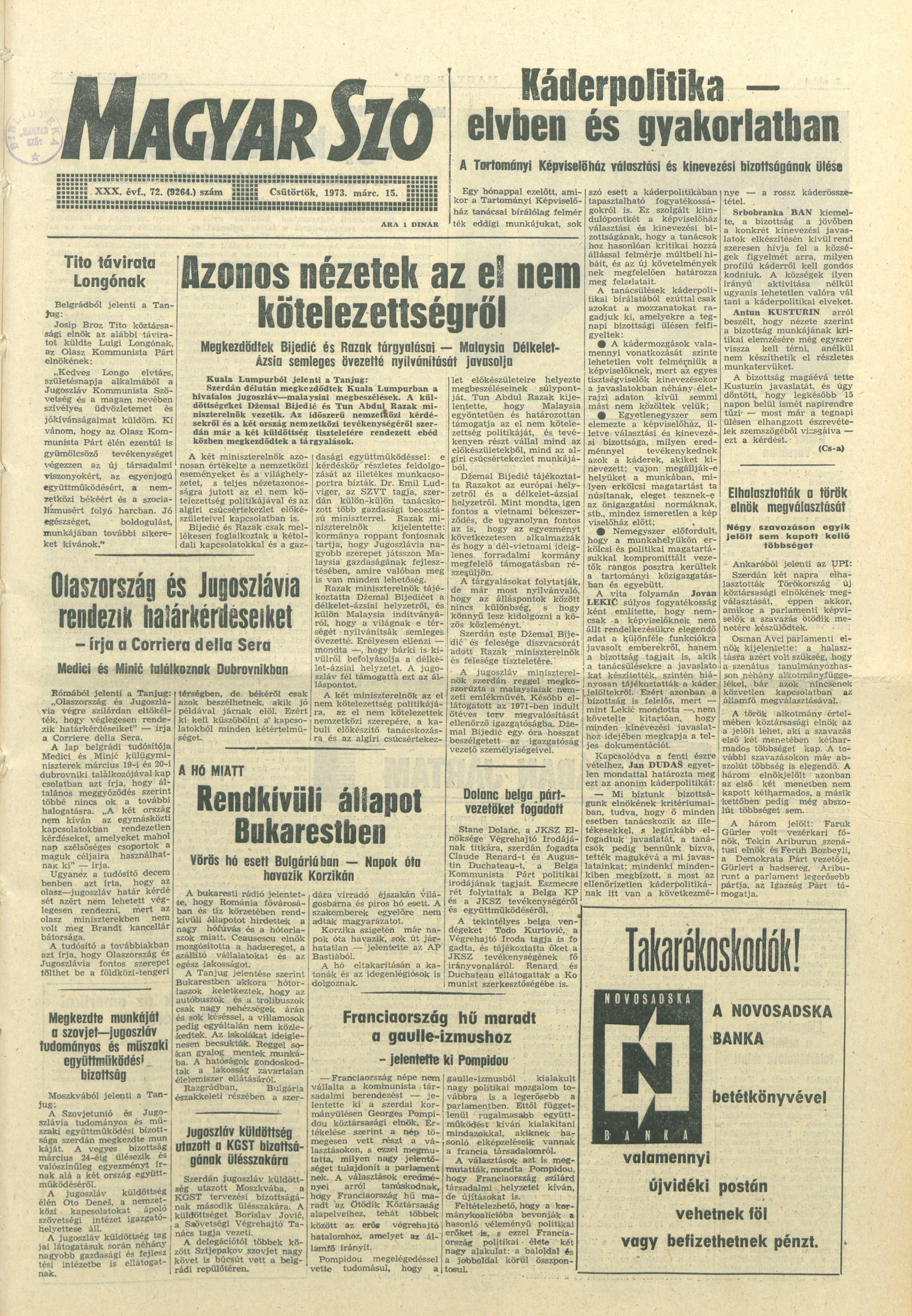 Magyar Szó, 30. évf. 1973. március 15. 72. sz. 1–16. oldal