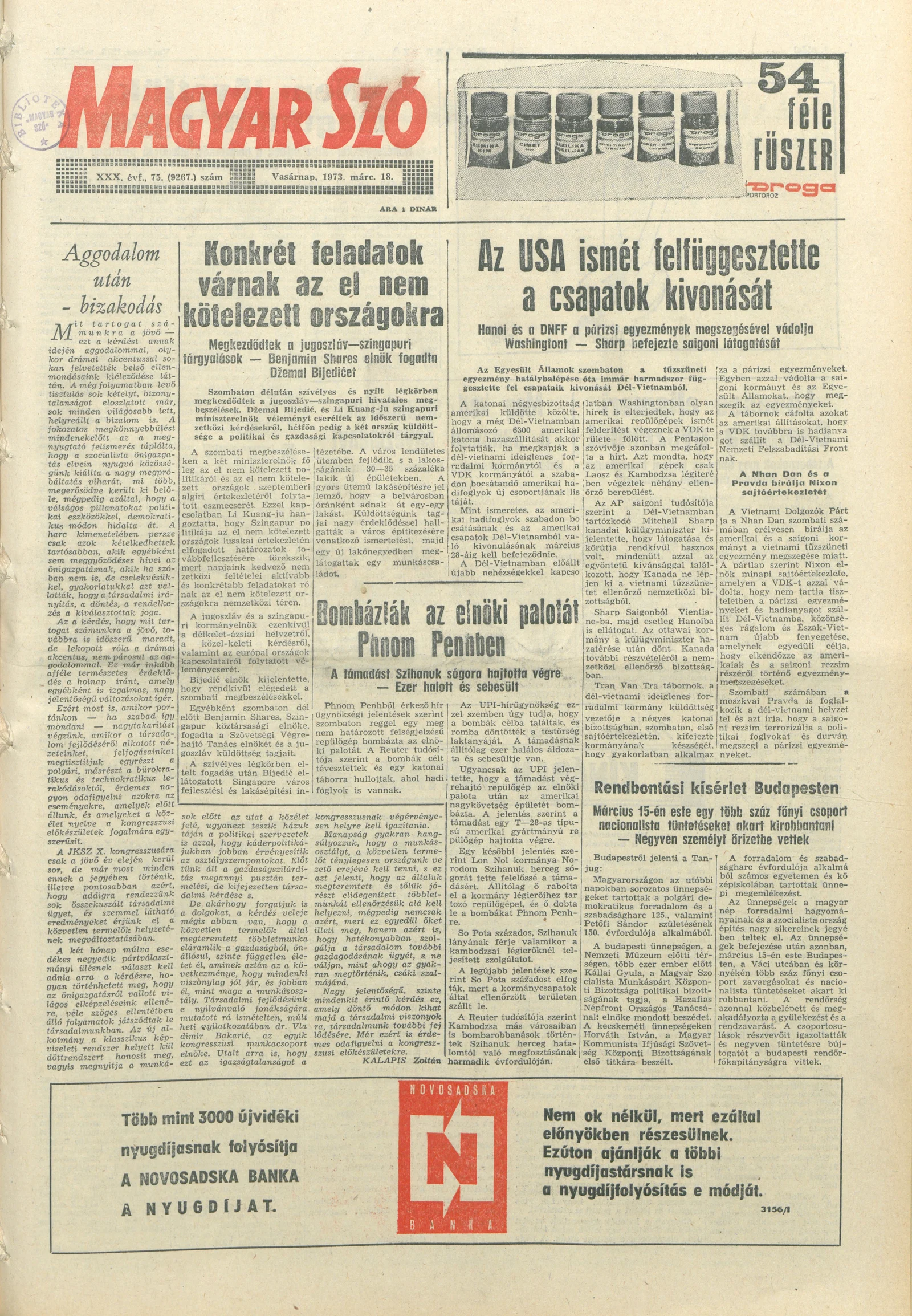 Magyar Szó, 30. évf. 1973. március 18. 75. sz. 1–32. oldal