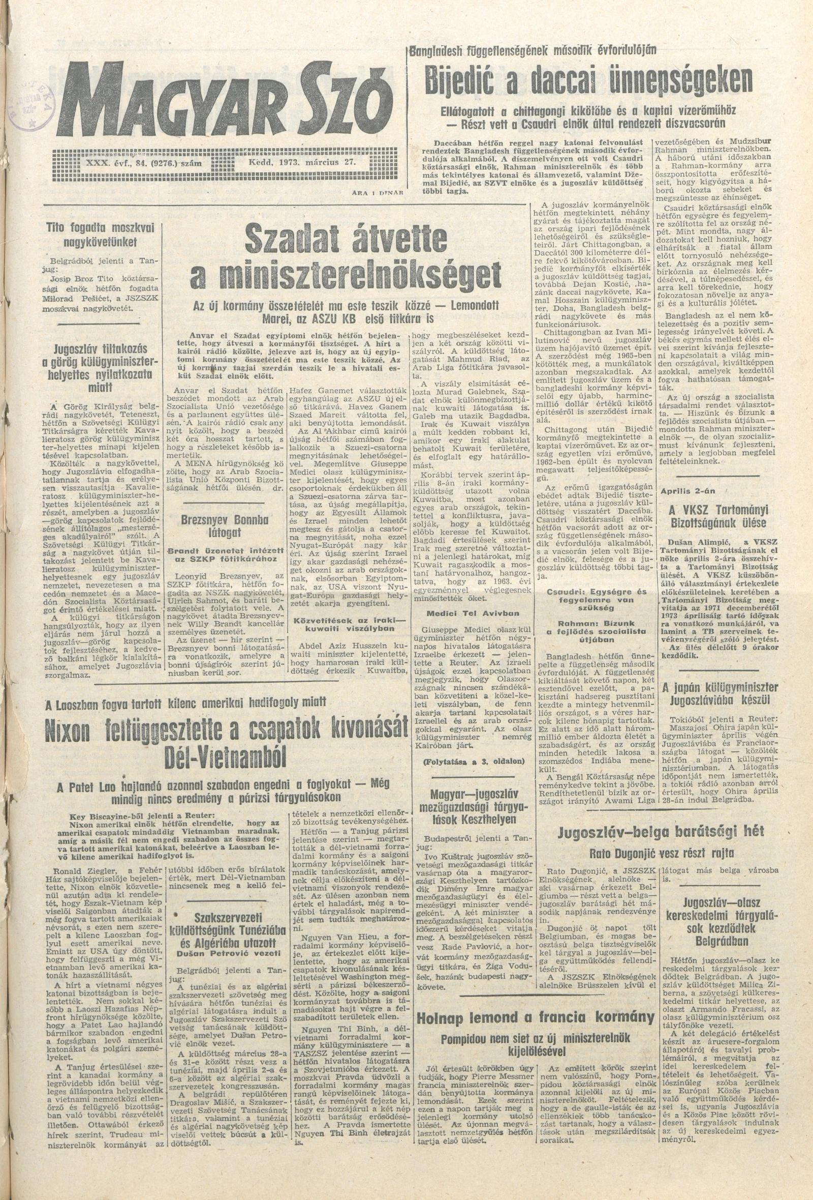 Magyar Szó, 30. évf. 1973. március 27. 84. sz. 1–20. oldal