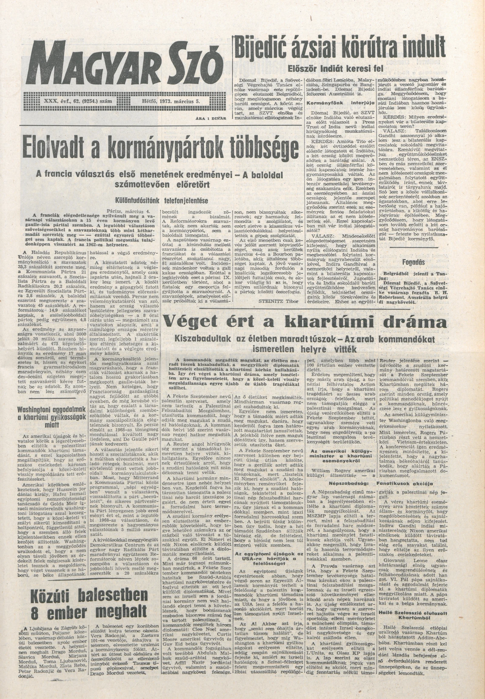 Magyar Szó, 30. évf. 1973. március 5. 62. sz. 1–10. oldal