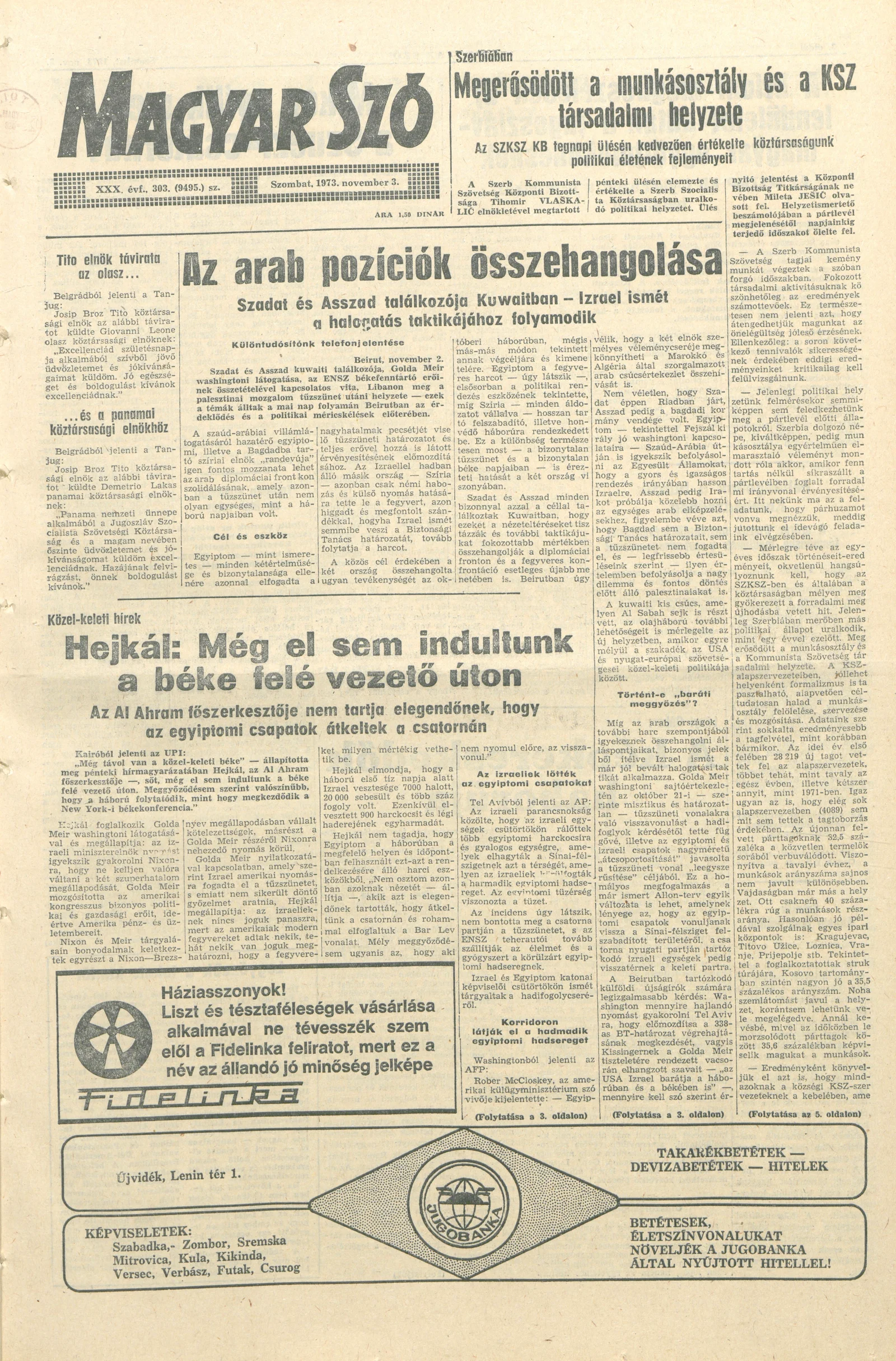 Magyar Szó, 30. évf. 1973. november 3. 303. sz.