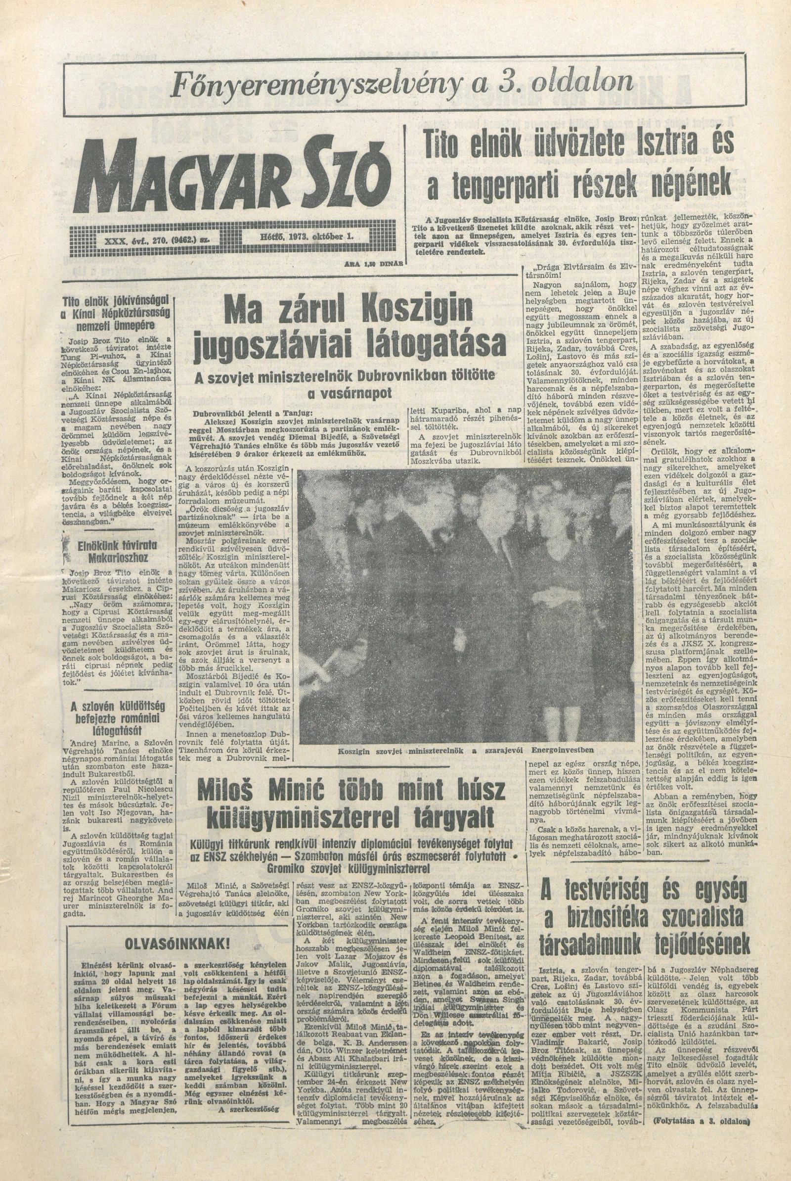 Magyar Szó, 30. évf. 1973. október 1. 270. sz. 1–4. oldal
