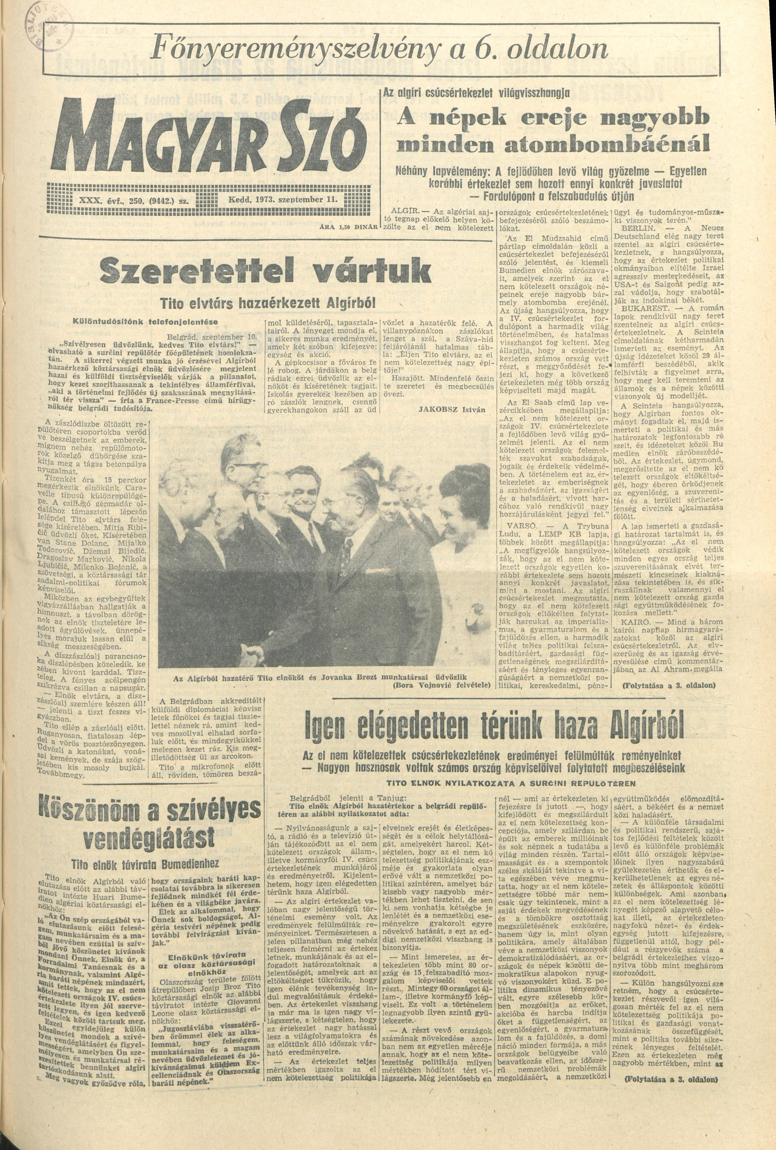 Magyar Szó, 30. évf. 1973. szeptember 11. 250. sz. 1–20. oldal