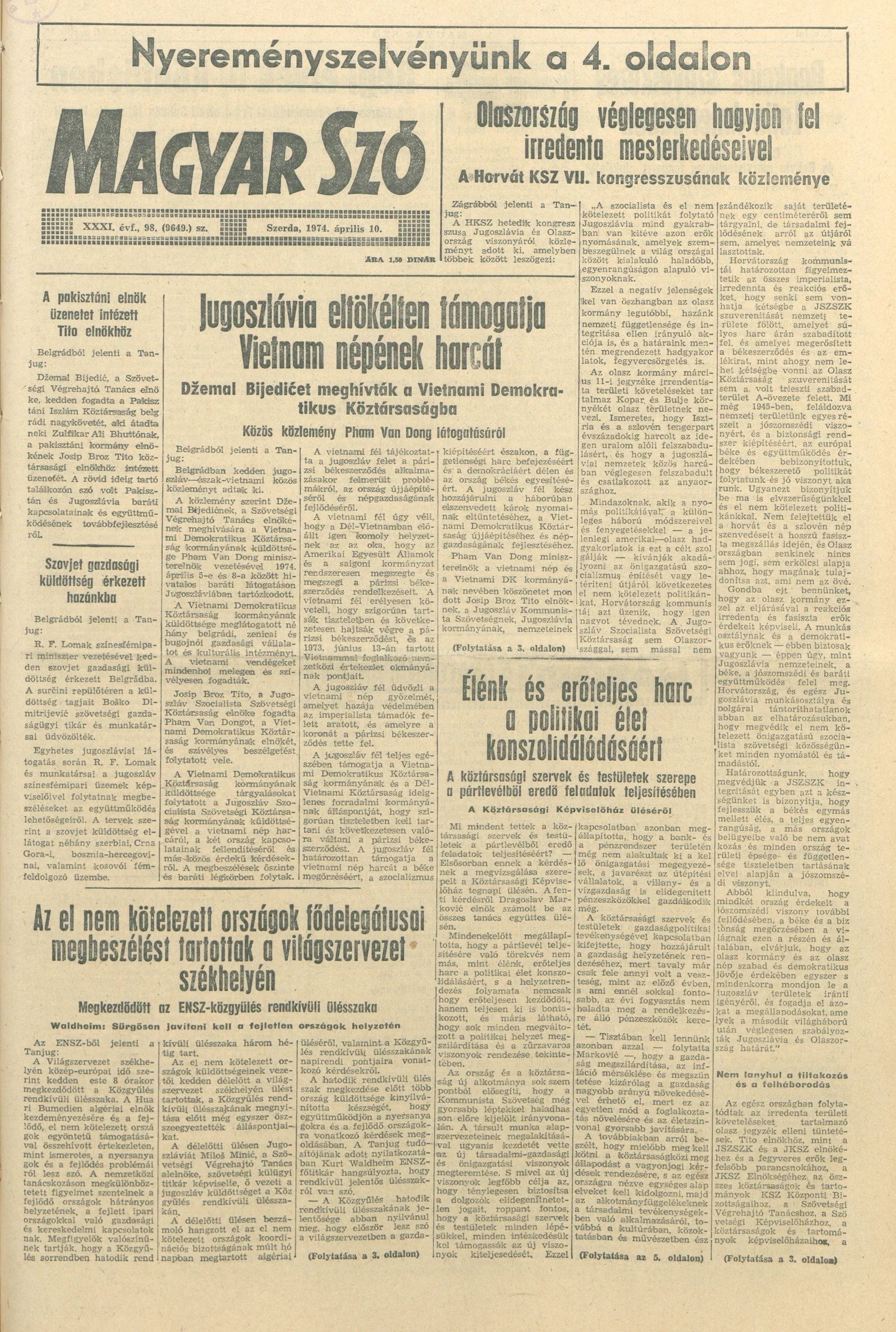 Magyar Szó, 31. évf. 1974. április 10. 98. sz. 1–20. oldal