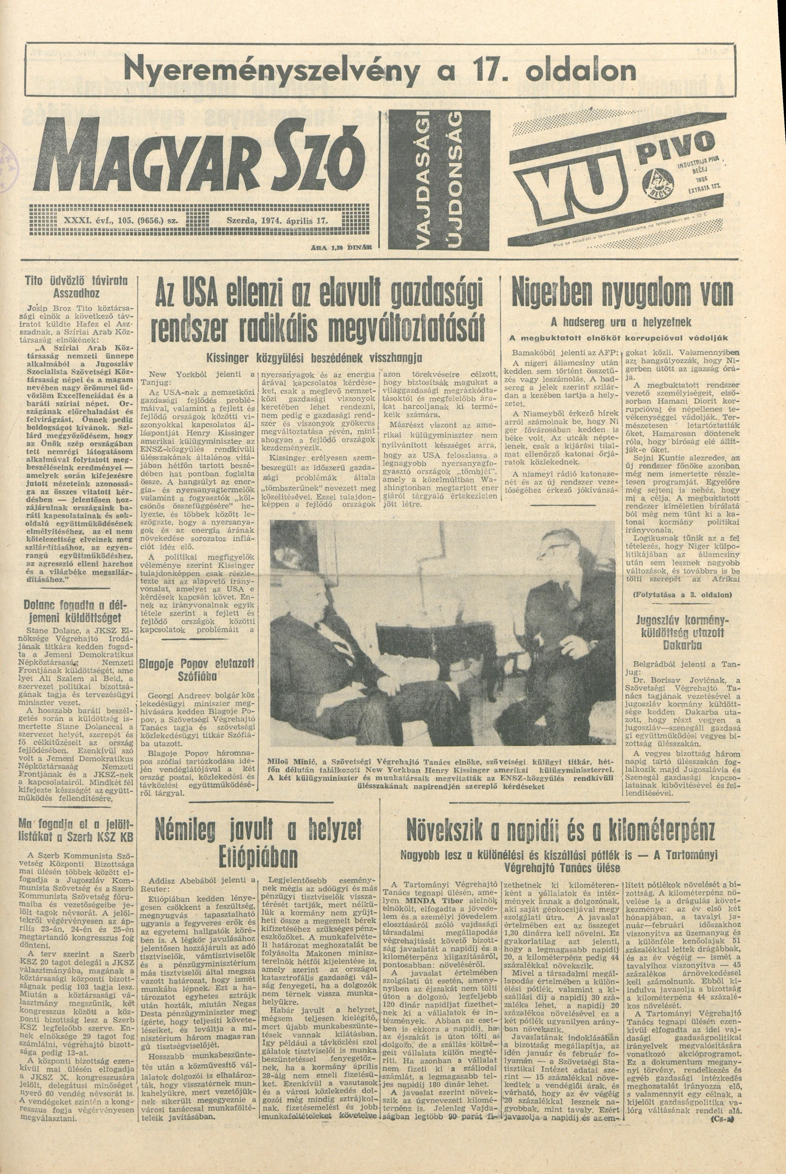 Magyar Szó, 31. évf. 1974. április 17. 105. sz. 1–20. oldal