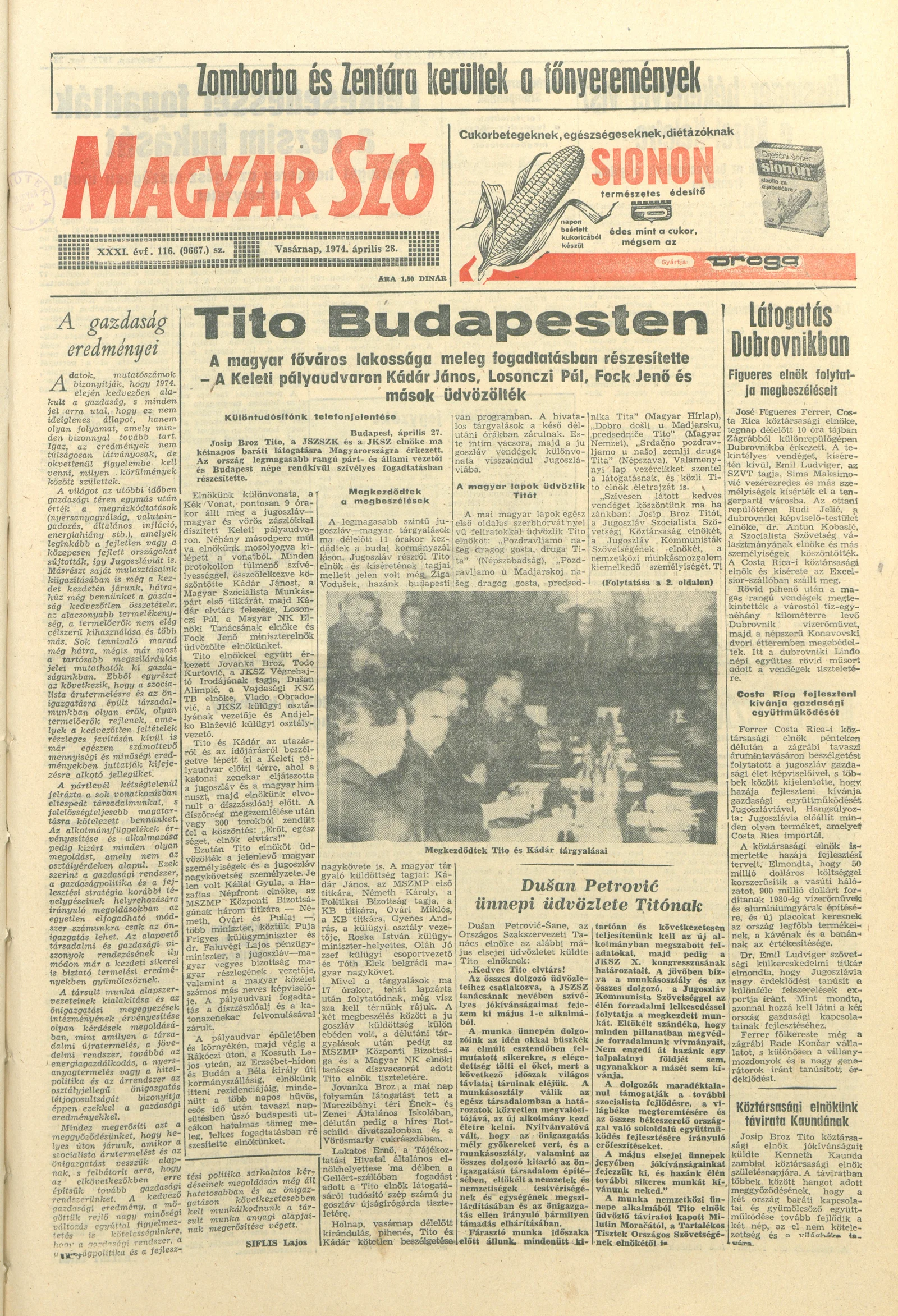 Magyar Szó, 31. évf. 1974. április 28. 116. sz. 1–32. oldal