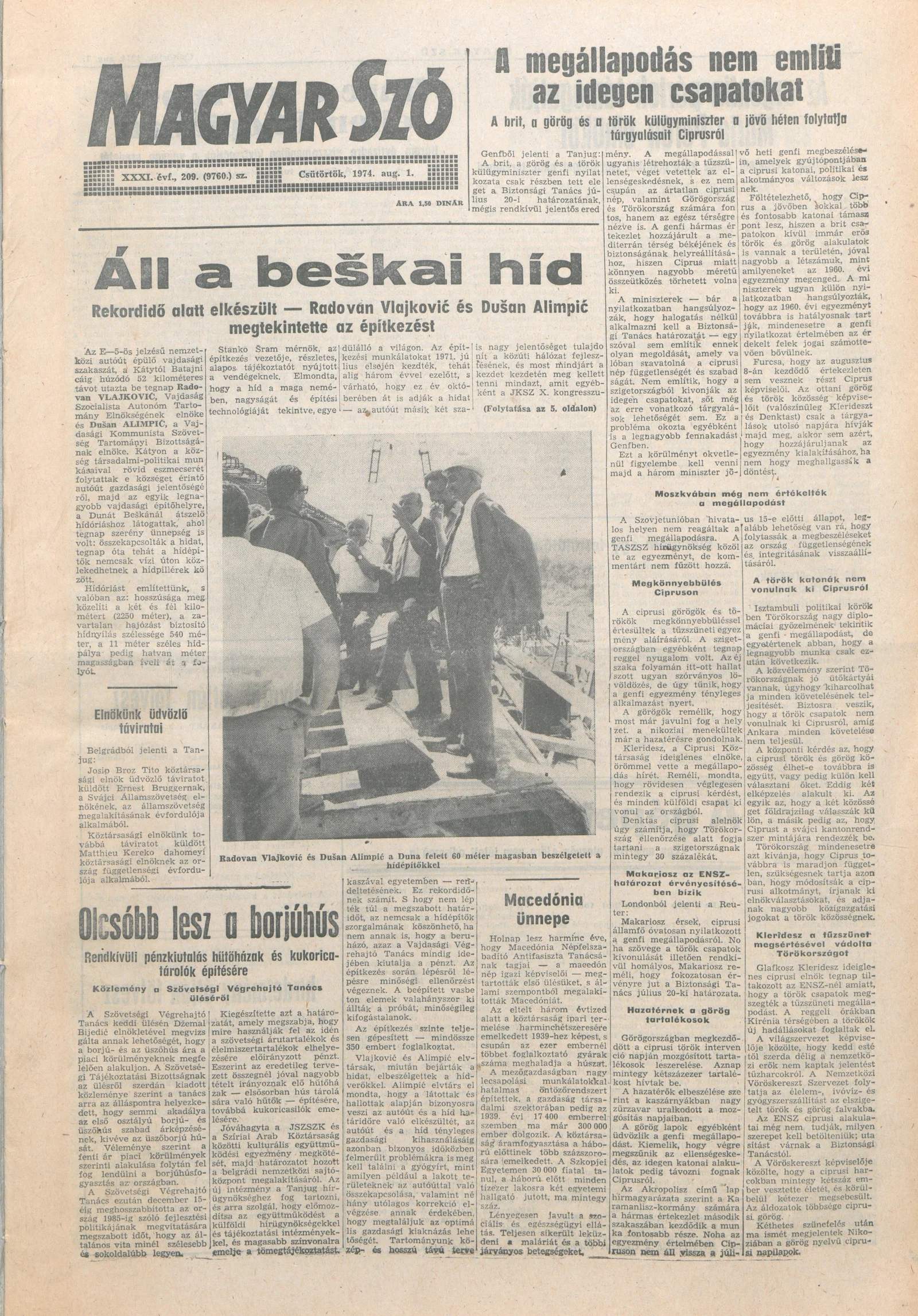 Magyar Szó, 31. évf. 1974. augusztus 1. 209. sz. 1–16. oldal