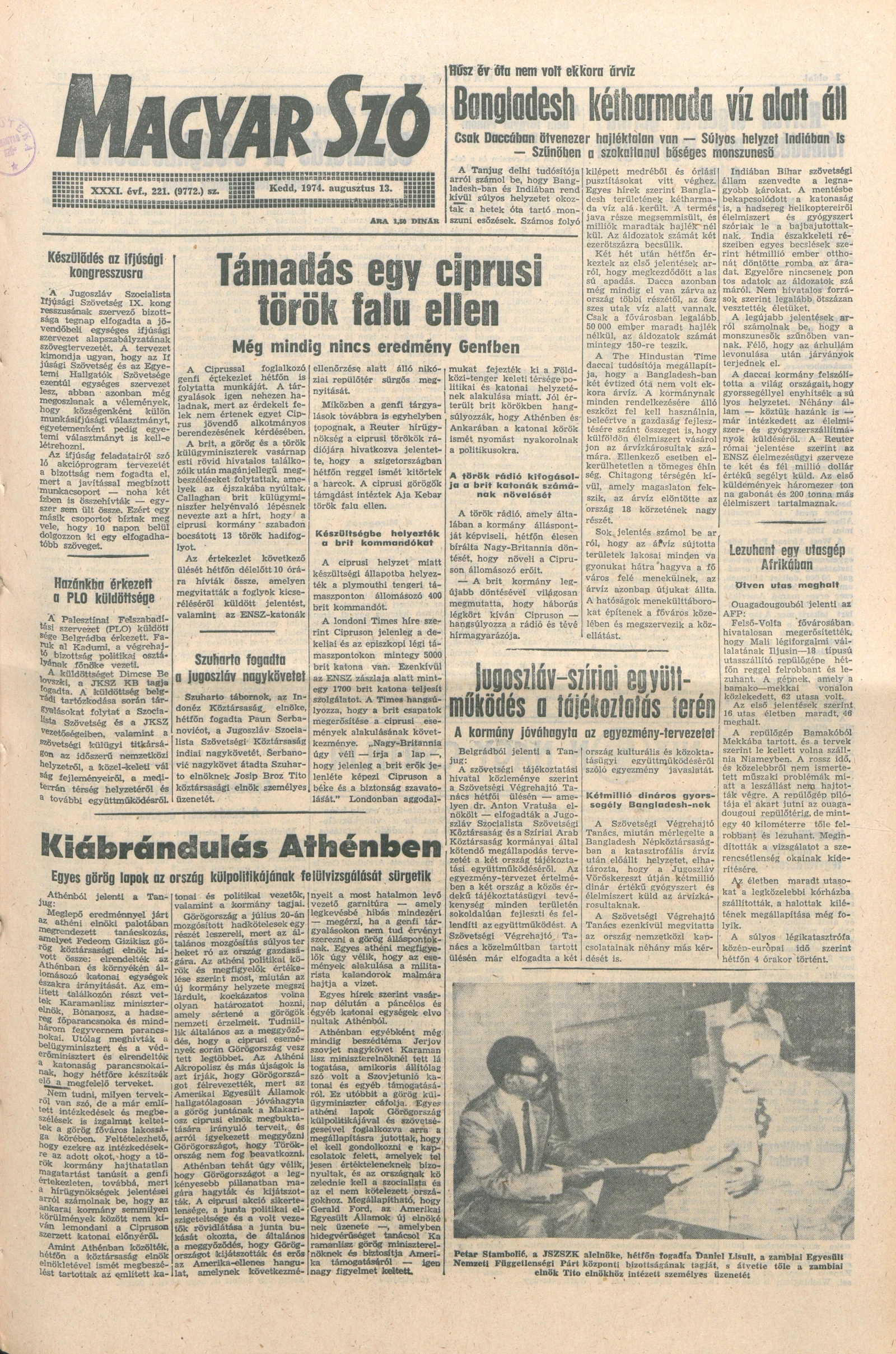 Magyar Szó, 31. évf. 1974. augusztus 13. 221. sz. 1–16. oldal